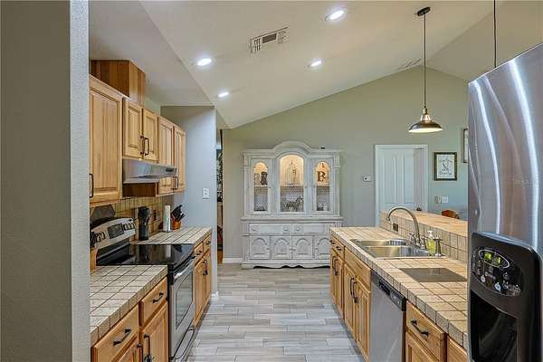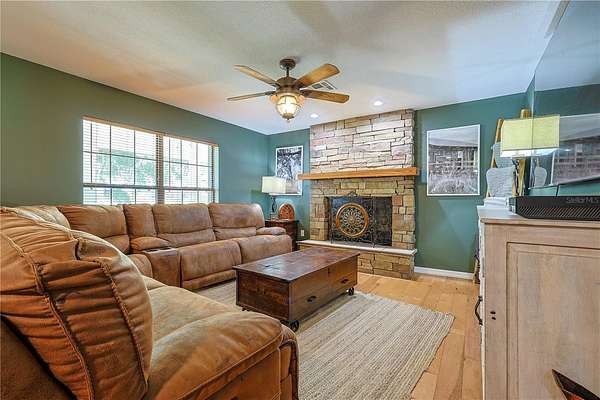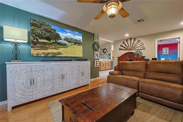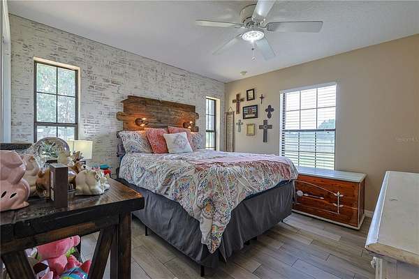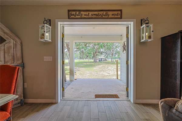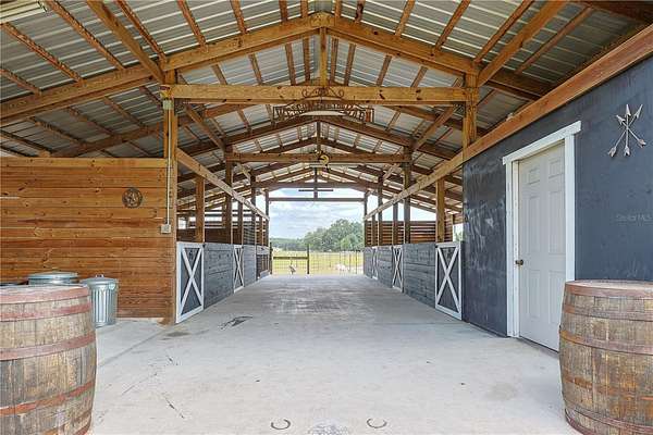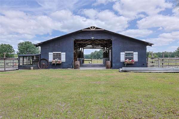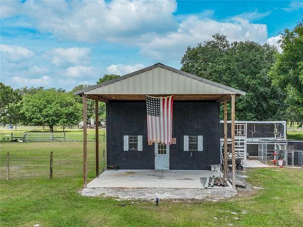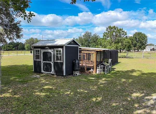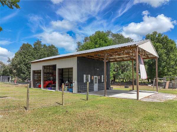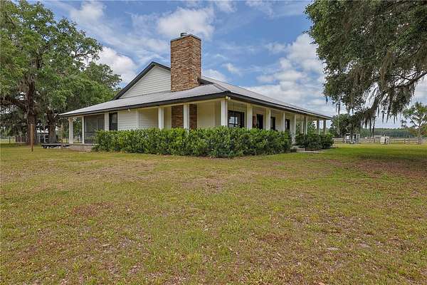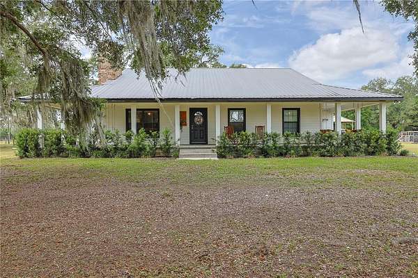 Escape to the tranquility of rural living with this beautifully maintained 10.08-acre farm, perfectly set up for your agricultural dreams. Located in the peaceful countryside of Webster, Florida, this fully fenced property is ready for horses, goats, chickens, and more! The rustic 4-bedroom, 2.5-bath home offers 2,148 sq. ft. of warm, inviting living space, featuring a wraparound porch perfect for soaking in the serene views. Inside, you'll find ceramic tile in all common areas, engineered hardwood floors in the bedrooms and family room, and a cozy wood-burning fireplace that adds the perfect country charm. The kitchen boasts tiled countertops and solid wood cabinetry, creating a warm and functional space for home-cooked meals. A durable metal roof offers peace of mind and long-term reliability. For those who love the outdoors or need space for animals, this property delivers with: