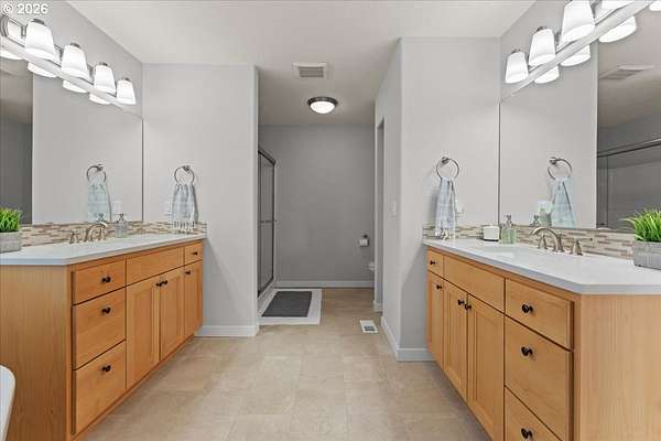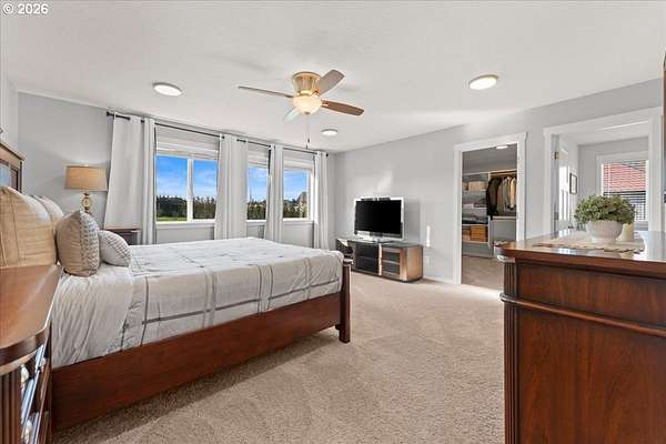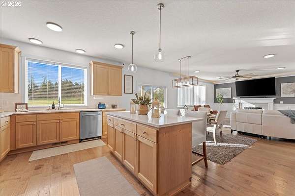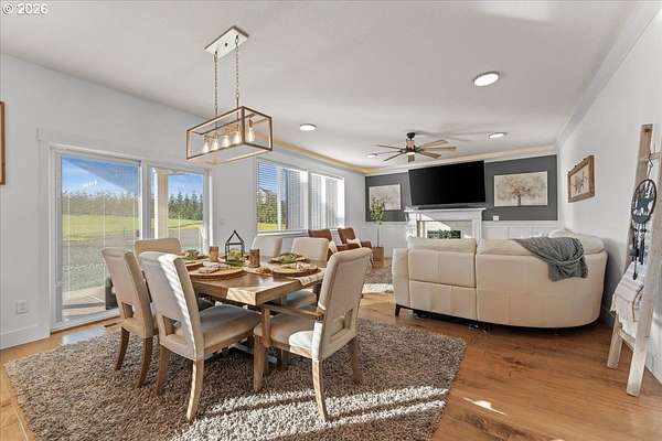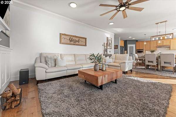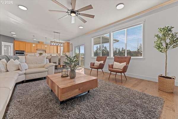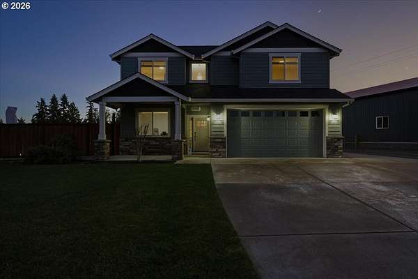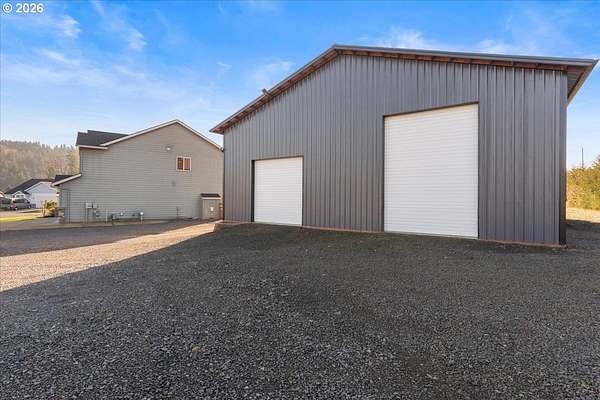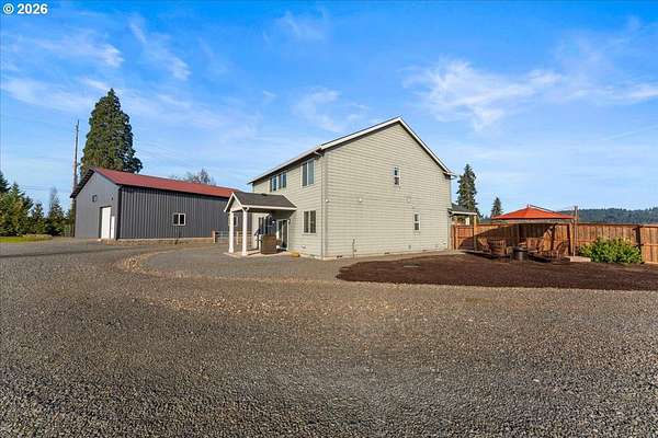 An exceptional property set on a level 2 acres offers a rare combination of a beautiful custom home, expansive grounds & an absolutely incredible shop! Contractors, hobbyists, car collectors, mechanics & entrepreneurs alike will appreciate the massive workshop equipped for serious use. The 45'x54' shop features 3 roll-up doors, allowing drive-through access. Ideal for RVs, boats, car collections, inventory storage & creative pursuits. The shop includes it's own bathroom w/tile shower, tankless water heater, utility sink + is prepped for HVAC installation. Sun-drenched & spotless, the house is completely move-in ready! Work from home in style in a bright, private office at the front of the house. Designed for both form & function, the generous kitchen will delight your inner chef, featuring wood cabinetry, sleek quartz countertops, walk-in pantry & modern engineered hardwood floors. The 2023 stainless steel KitchenAid suite includes a 5-burner gas range + built-in electric oven, all surrounding a generous island & eat-in bar. The heart of the home is the expansive, open-concept great room-ideal for hosting lively dinner parties, or curling up on a massive sectional for cozy movie nights. Escape to the primary suite w/high ceilings, generous walk-in closet, f/s tub, shower & 2 single vanities. A flexible 4th bedroom makes an excellent office, playroom, or craft space. Upstairs laundry adds everyday convenience (2023 Samsung washer & dryer included). Storage abounds throughout the home, shop & backyard shed. Set perfectly between Oregon City, Molalla, and Canby, w/access to Hwy 213, shopping, dining & major medical, while maintaining a peaceful small-town feel. Level, securely fenced w/garden & fruit trees & endless possibilities for a pool, sports court or play area. Located on a private cul-de-sac loop with friendly neighbors, colorful sunsets & no through traffic. This is a truly special property offering space, flexibility & exceptional amenities-inside and out!