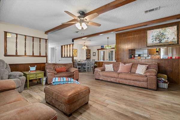 Rare opportunity to own a versatile property on 2.17 fenced acres featuring a primary residence, fully furnished guest home, and an exceptional shop setup—offering flexibility for multi-generational living, rental income, or home-based business use. The main home offers 3 bedrooms, 2 bathrooms, and 1,691 square feet with fresh paint and tasteful updates throughout. The inviting living area is anchored by a wbp, while the sunroom with dedicated AC provides a bright, year-round bonus space for relaxing or entertaining. The separate guest house adds approximately 1,200 square feet with 2 bedrooms and 1.5 bathrooms, showcasing a beautifully updated farmhouse design. Being sold fully furnished, this space is ideal for guests, extended family, or immediate use as a short-term rental (has been on Airbnb the last 3yrs). The 40x60 shop is built to impress with three 12-foot overhead doors and an 12-foot drive-through bay—perfect for storing boats, RVs, equipment, or operating a business. Set on 2.17 acres, the property offers space, privacy, and functionality all in one. With multiple living spaces and a shop that truly sets it apart, this property delivers both lifestyle and opportunity.