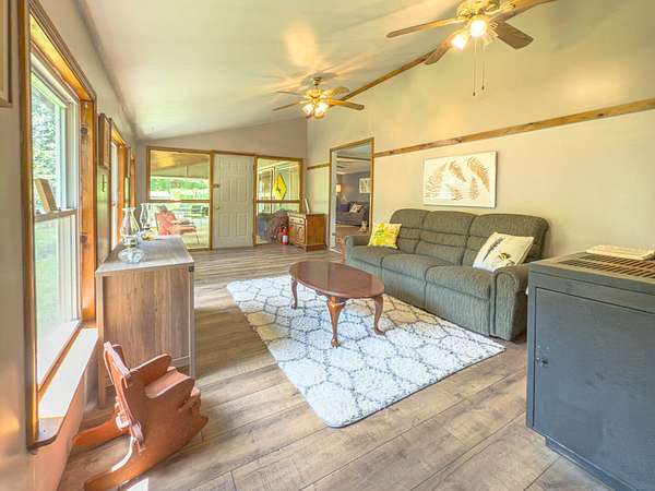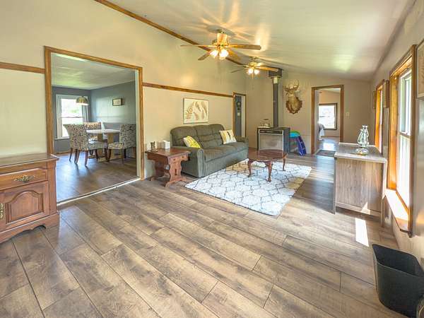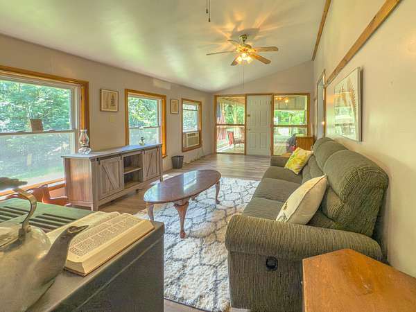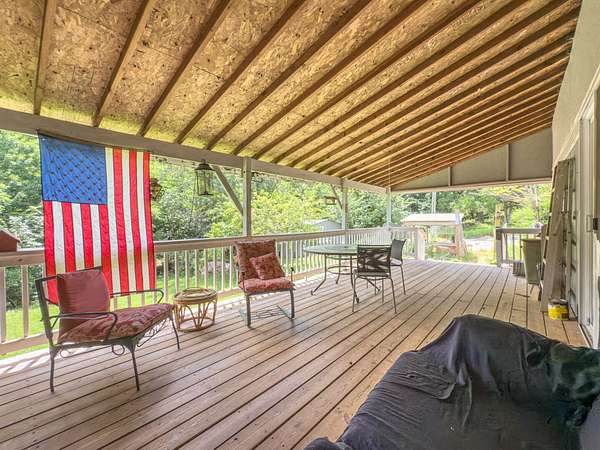 12.29 acres with a fully furnished manufactured mountain home for sale along Woodland Mountain Trail in Hampshire County, WV. Located at the top of the ridge, this private and secluded property offers excellent opportunities for hunting, recreation, or full-time living. The interior of the 1,600 sq ft 3-bedroom 2-bath home offers an open-concept layout with a spacious bonus room featuring tall ceilings and large windows. The land features mature cherry, apple, pear, peach, and walnut trees in both the front and back yards, with additional space available for gardening. Outdoor living is enhanced by a covered front patio and back deck, perfect for enjoying the mountain setting. White oak, chestnut oak, and red oak dominate the forested area, providing valuable hard mast. Wildlife is abundant, including frequent sightings of deer and turkey. The property includes two separate parcels, each with its own well and septic system. The small, dilapidated cabin located on the second parcel could be renovated into a guest house. The home conveys fully furnished, with only a short list of sentimental items excluded. This property offers a unique mix of comfort, functionality, and outdoor adventure.