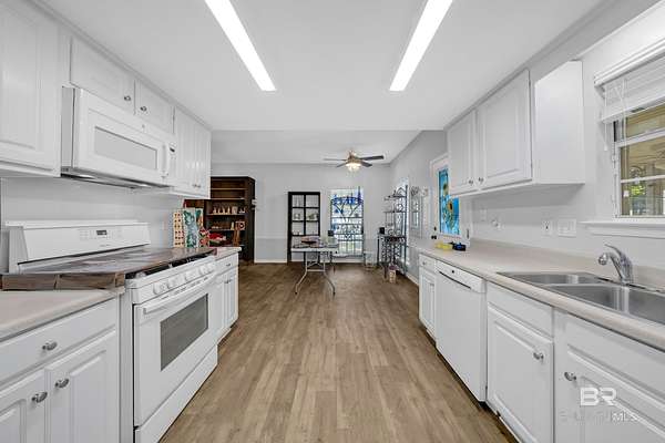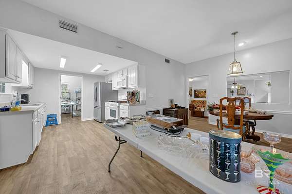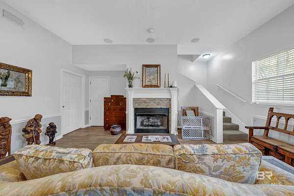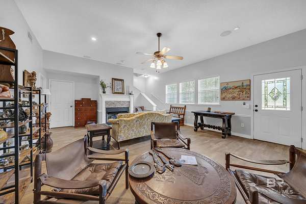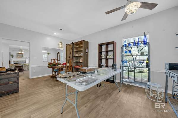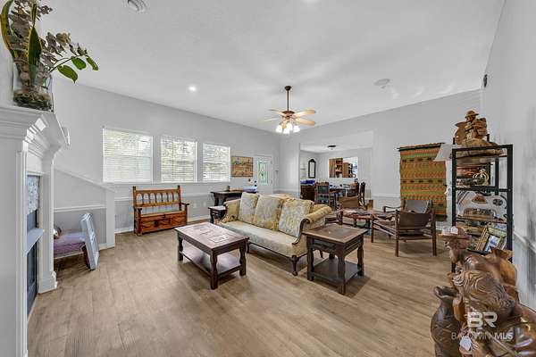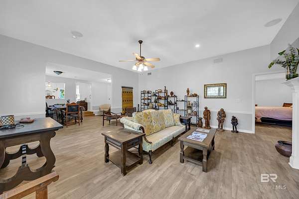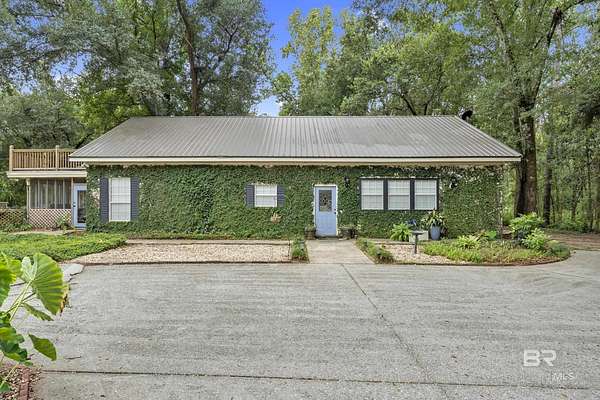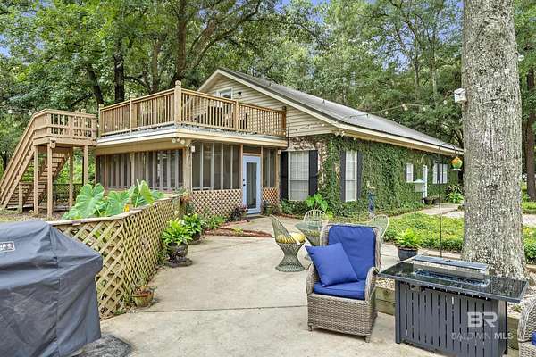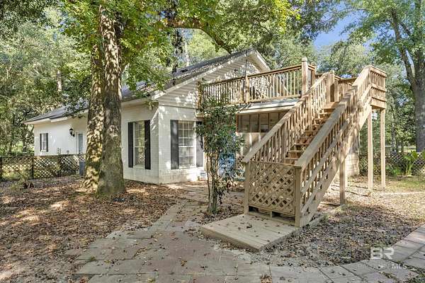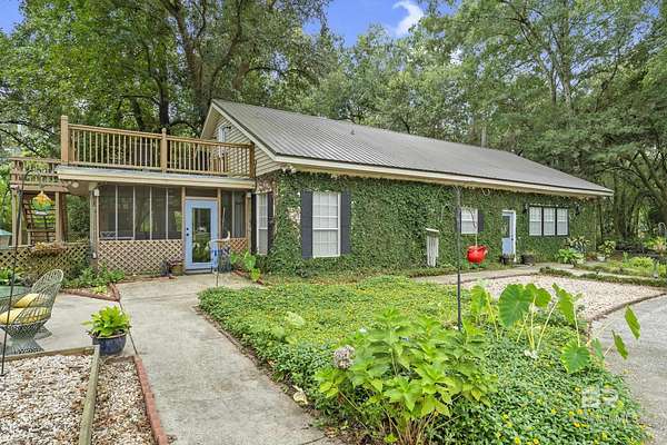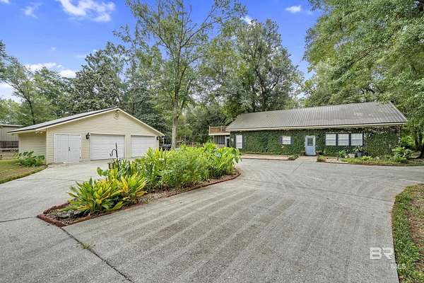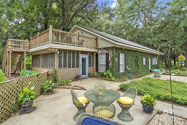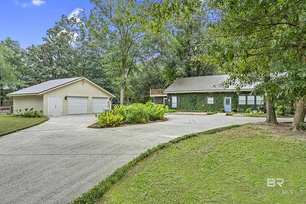 If you are looking for peace and quiet, enjoy the tranquility of country living while staying close to downtown Fairhope. Nestled on a peaceful 1.6-acre lot, this spacious home offers a blend of comfort, functionality, and flexibility for multi-generational living or a home-based business. Your main level features is the expansive living room with soaring ceilings, a cozy gas fireplace, and built-in surround sound. Your open-concept kitchen and dining area with an adjoining secondary living space. The generously sized primary suite en-suite has double vanities and you second full bathroom features a luxurious jacuzzi tub. Upstairs there are 2 additional bedrooms, 1 full bathroom with a walk-in shower, and a versatile sitting area which would be perfect for a playroom, home office, gym, or even an in-law suite with a private entrance and access to a large deck overlooking the serene garden. This home features 2 HVAC units for zoned climate control between floors, with plenty of space for your hobbies, or equipment storage, with an independent living space which is ideal. When it comes to your outdoor living there is a spacious patio area with outdoor sink, string lights, built-in speakers, and a Weber gas grill (included) that leads out to your large, fenced-in backyard with storage shed. This space is ideal for entertaining and outdoor recreation plus there is already chicken enclosures for farm-fresh living. Also on the property is a detached two-car garage with attached workshop, plus two additional outbuildings for storage & equipment. Buyer to verify all information during due diligence.