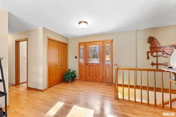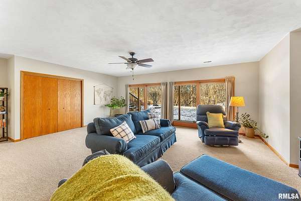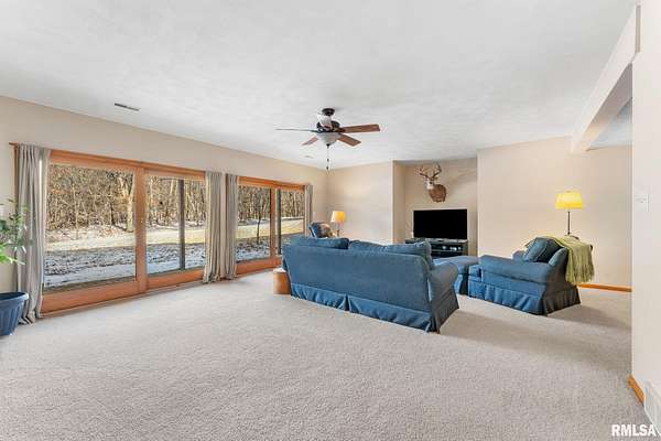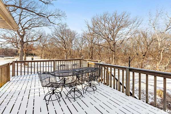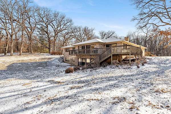 Exceptional 216+/- acre recreational and residential estate located just 5.5 miles north of Geneseo, IL in Henry County. The property sits on Shadow Lake, a privately owned ~95-acre lake shared with only a handful of landowners, and includes 52+/- acres of water with over 1.5 miles of shoreline. The lake offers boating, kayaking, swimming, fishing, and outstanding waterfowl hunting. The land is predominantly timbered with mature hardwoods, established hardwood plantings, an extensive UTV trail system, and three food plot locations providing excellent deer hunting opportunities. The main residence, built in 1990, features 4 bedrooms, 3 bathrooms, a walk-out basement, finished 2-car attached garage, and a large deck. The open kitchen includes a large island and flows into the dining area, while large windows and glass doors provide abundant natural light and peaceful wooded views throughout the main living areas and lower-level family room. A finished and climate-controlled 930+ sq ft guest or caretaker's home offers 2 bedrooms, 1 bath, and an attached 2-car garage. Additional improvements include a 30x60 equipment shed. Private well, septic systems, and two owned 1,000-gallon LP tanks. Extremely private setting with close proximity to the Quad Cities. Geneseo Schools.