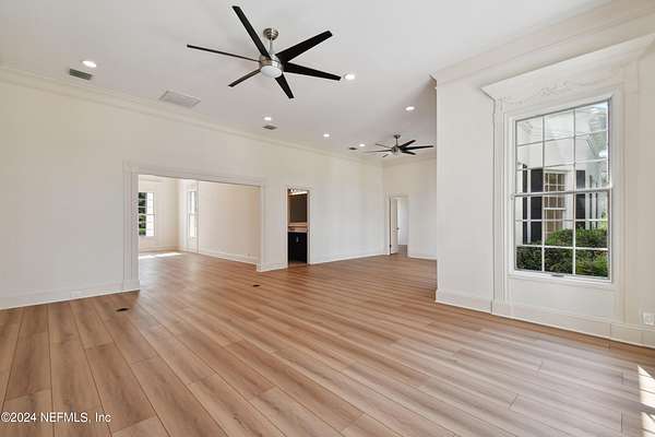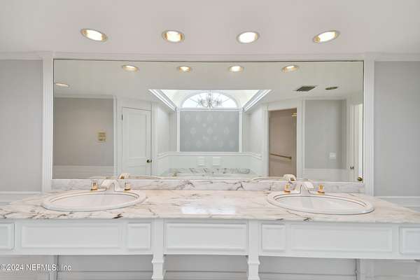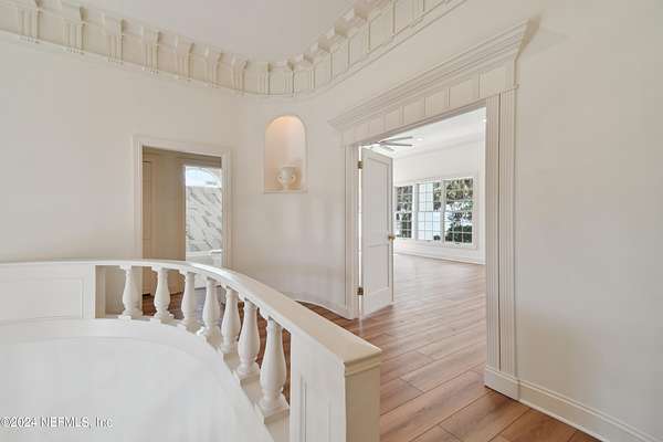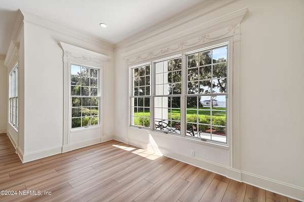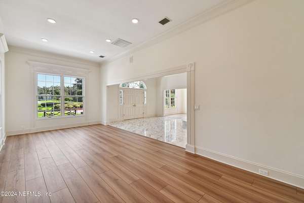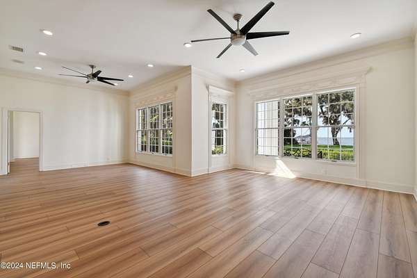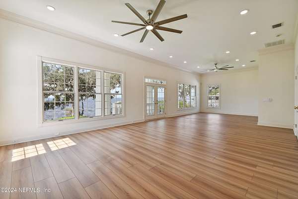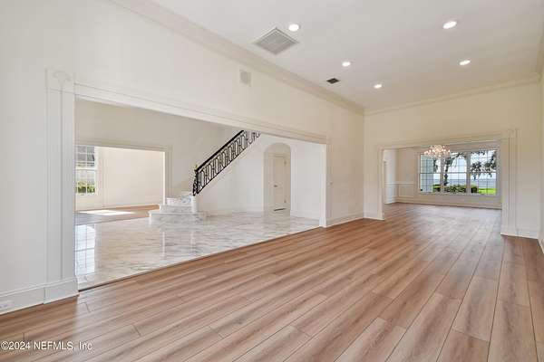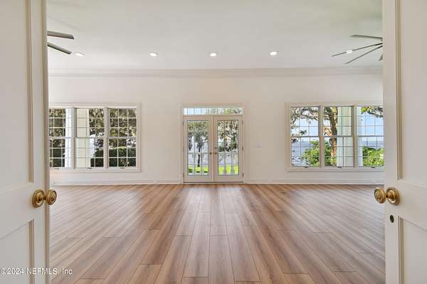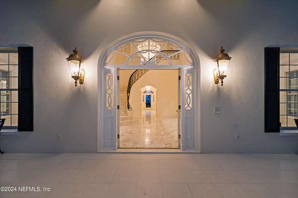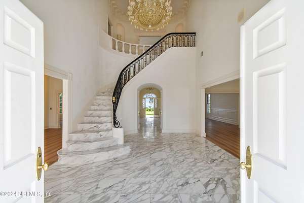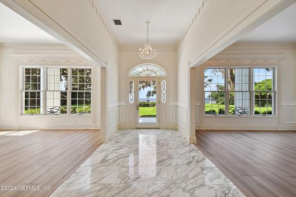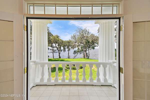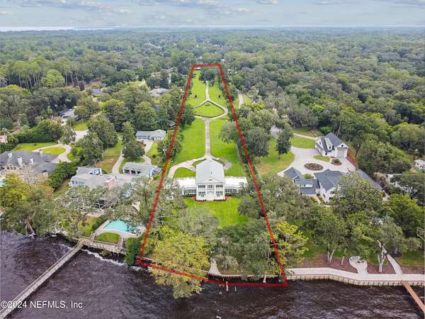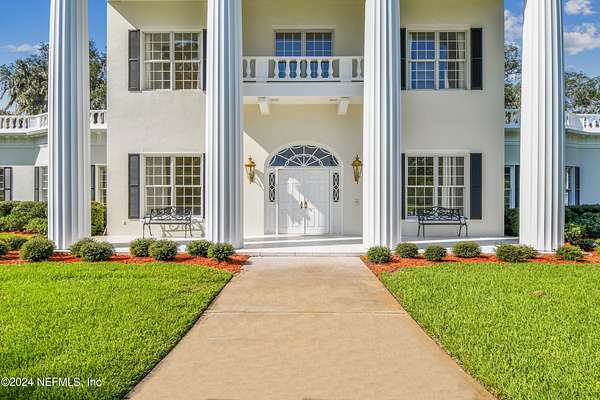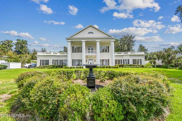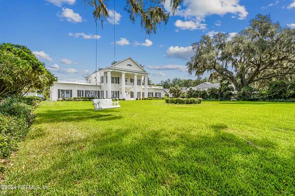 Discover the ultimate in riverfront luxury with this stunning 5.81-acre estate on historical Mandarin, where elegance meets tranquility. Perched atop a high bluff, this custom-built mansion by Collier Classic Homes offers breathtaking, unobstructed views across one of the widest stretches of the St. Johns River. As you pass through the gate framed by majestic oaks, and travel down the quarter-mile private drive, the Greek Revival home inspired from the historic Orton Plantation unveils itself in all its grandeur. This 4,827 sq ft residence has been meticulously remodeled, combining timeless luxury with modern technology. It features grand California redwood columns, Italian marble, crystal chandeliers, and intricate trim work, all enhanced by smart home controls, EV charger as well as whole house internet wiring. A heaven for equestrian and boating enthusiasts, the property is meticulously landscaped, gated, and fenced for complete privacy. Option split: 4ac land+1.81ac river/home. NOTABLE FEATURES: - Expansive Riverfront Property: 5.81 acres with 159 feet of road frontage and more than 170 feet on the St. Johns River. - High and Dry Location: The first floor is 14 feet above water level, ensuring the property is never flooded. No lender requirement of flood insurance. - 3 beautiful bedrooms with the option to easily add 2 more. Floor plan included in the document. - Historic Significance: This is one of the earliest homesites on Mandarin Point, with an early survey landmark in the backyard that benchmarks the entire Mandarin area. - Crafted by Collier Classic Homes: Built in 1988 with enduring quality and attention to detail. - Greek Revival Architecture: Inspired by the historic Orton Plantation in North Carolina, the home's classical symmetrical design enhances both its aesthetics and functionality. - Spacious Living: 4,827 square feet of living space. Attached 2-car garage. - Dual Master Suites: Two large master suites, one on each floor. The second-floor suite boasts a 37 x 16 feet size and a private balcony. - Recent replacement: New roof installed in 2024 and a new garage door in 2023. Fresh paint inside and out. All the windows have been resealed and repainted. 4 half-moon picture windows were replaced by "Renewal By Andersen" in 2023. Three HVAC units replaced in 2018, 2019, and 2020. Irrigation system fully redo of the entire 5.8 acre land in 2023. - Elegant Interiors: Grand marble staircase and Schonbek crystal chandeliers throughout. The foyer and hallway feature 550 square feet of marble flooring, with the rest of the flooring newly installed in 2024. - Natural Light and Views: Large windows flood the home with natural light and offer stunning river views from dawn to dusk. Symmetrical front and back porches, each 360 square feet, enhance the outdoor living. - River Breezes: Enjoy a refreshing breeze through the central hallway by opening the front and rear doors. - Ceiling Heights: 12-foot ceilings height, with a stunning 25-foot-tall foyer that adds to the grandeur of the home. - Energy Efficiency: The passive solar home design, Google nest thermostats, combined with concrete block construction, provides superior energy efficiency, ensuring year-round comfort while minimizing energy consumption. - Robust Construction: Built with concrete block for exceptional durability, offering superior resistance to water, wind, fire and termite damage. - California Redwood Columns: Eight identical, grand columns crafted from California redwood, set on iron plinths to prevent rot and allow proper ventilation underneath. - Smart Home Features: Control HVAC systems, ceiling fans, audio, and lighting with smart home technology. - High-Speed Internet: new CAT6 10Gbps internet wiring throughout the house. - Electrical system: 400-amp electrical panel and a new 50-amp electric vehicle charge point in the garage. - Advanced Security: Remote-controlled front gate with a new control panel, allowing video conversations with visitors vi