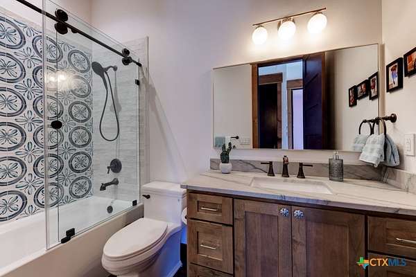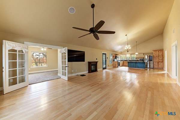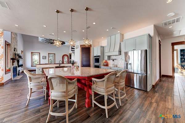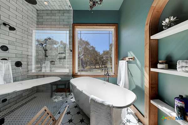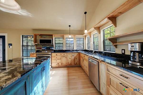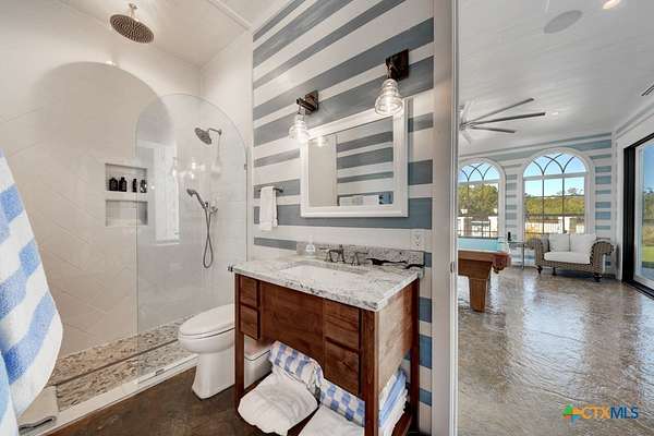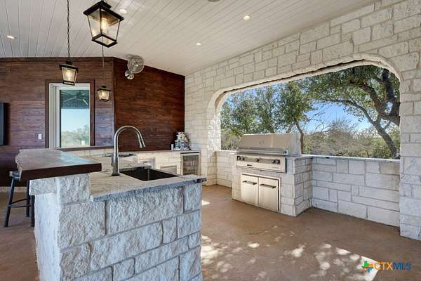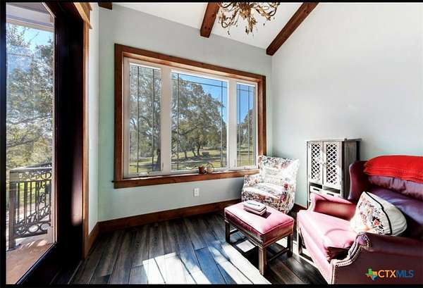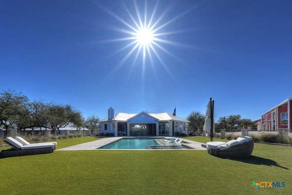 Welcome to this beautiful 53+ acre ranch conveniently located to Wimberley, Blanco, Canyon Lake and Austin! Enjoy endless hill country views and Agricultural exemptions in place for LOW property taxes! The main house is a Custom French country "smart home" built in 2024 by Auriel Building Company, complete with a chef's kitchen, wine/coffee/wet bar, primary bedroom with ensuite bath and sunroom, 3 secondary rooms and bath. Upstairs features a library with hidden door for access to the finished attic. You will love the Casita, game room, outdoor kitchen, fireplace and European inspired pool just in time for summer fun. The 3 car garage with 2 offices, storage and hidden safe room are attached to the main house. Additional car storage with 5 lifts and shop for the car enthusiast. Guesthouse, barn, stalls, arena, announcer's box, shooting range, storage, fenced and multiple automatic gates complete this property.