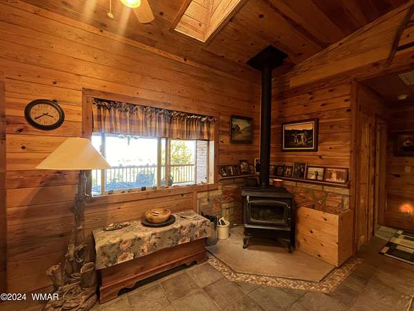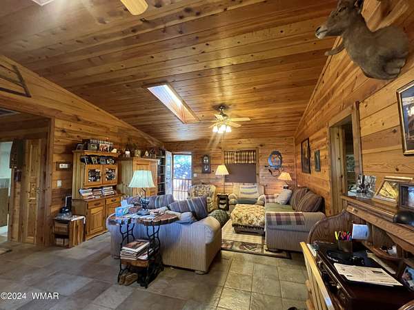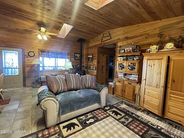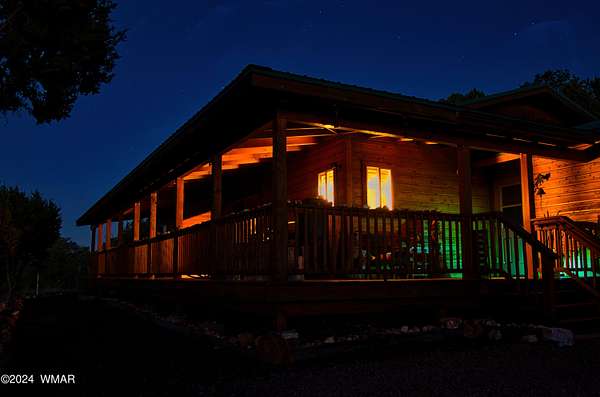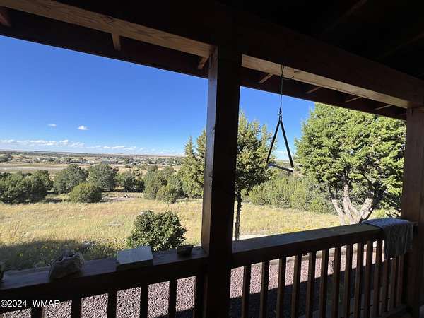 Come and check out this beautiful home with a town and country living experience. The convenience of living in town with the privacy of the country on 9.58 acres. The wrap around porch gives you sunset views of the mountains and town lights at night.; and of course, up close views of the four seasons with wildlife in your front yard! This home features three bedrooms, 2 bathrooms with oversize windows that offer much natural light and amazing views. Skylights let the sunshine in. Vaulted ceiling is finished with blue wood from Rodeo fire from years past. The living room features a corner wood stove to watch the flames dance, along with central heat. Wind down in the jacuzzi tub and relax in bed with a bedroom fireplace that is warm and cozy. Call today to see this unique home!