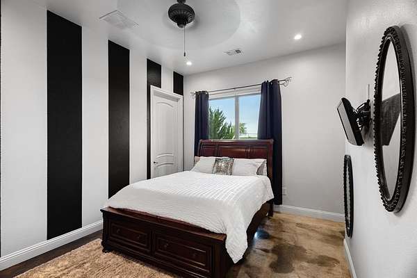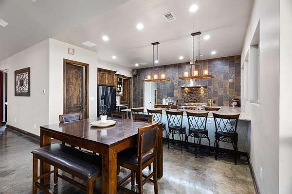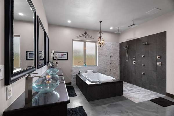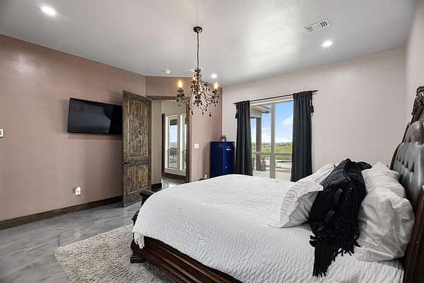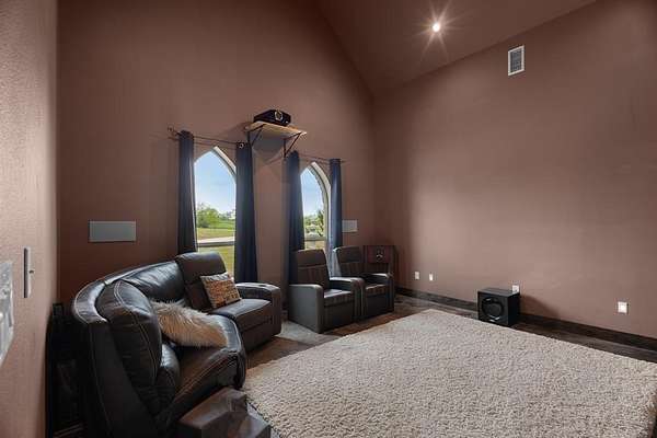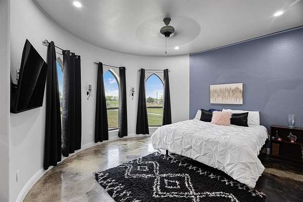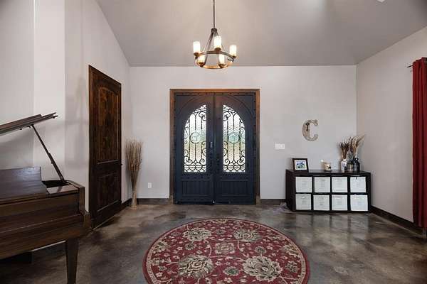*LISTED UNDER APPRAISED VALUE* Situated on 5 peaceful acres, this 1 story home offers 4 bedrooms, 2 half-bathrooms and 3,700 square feet of living space. Step inside to an open floor plan featuring stained concrete floors, vaulted ceilings, custom finishes, and a scenic view. The living room, featuring tall ceilings and grand fireplace, leads into the kitchen with complete with a 6 burner gas cooktop with griddle, pot filler, and beverage fridge. The primary ensuite is definitely an escape, with a large jetted tub, and over-sized walk in shower with 4 shower heads and 5 body sprays! The primary closet also includes a laundry space and access to one of the towers, currently used as an office.