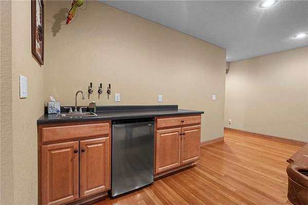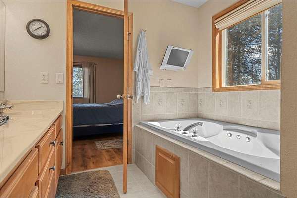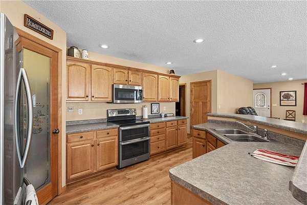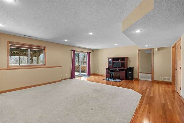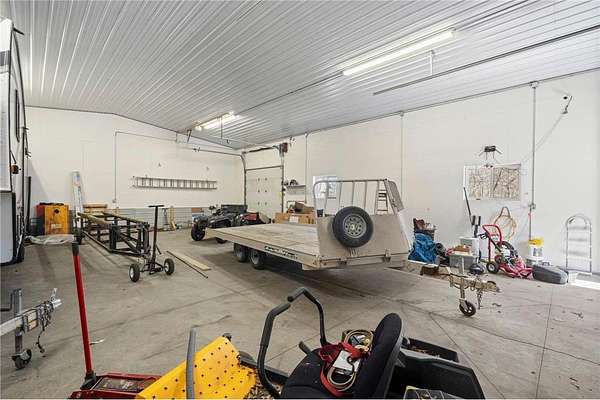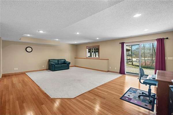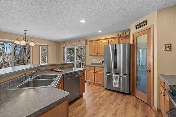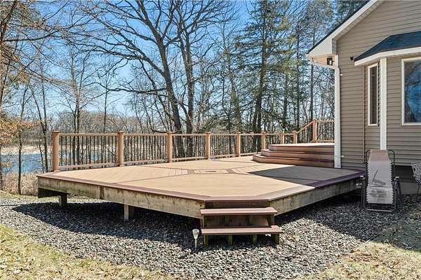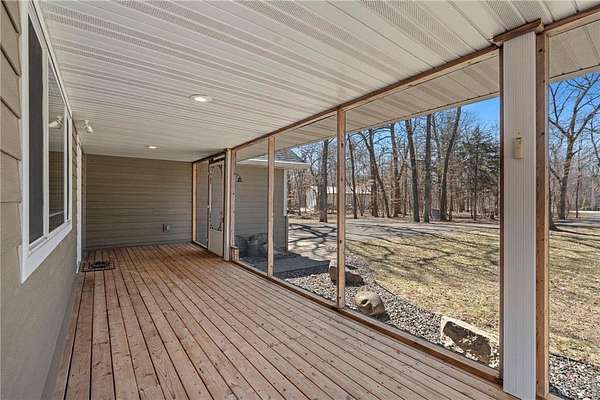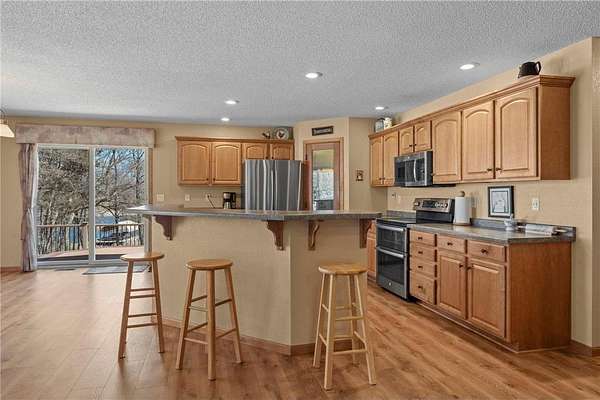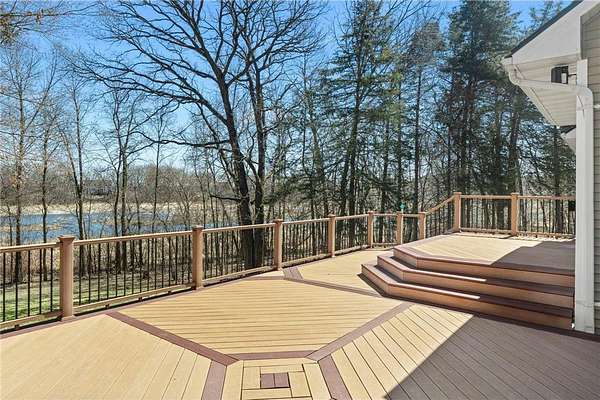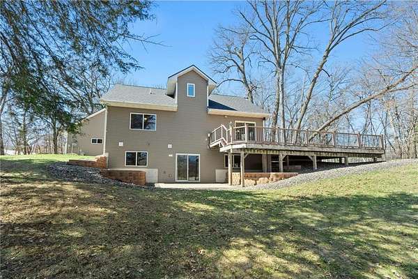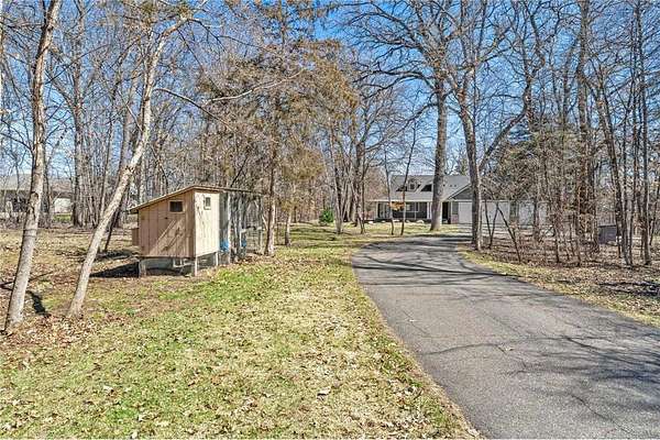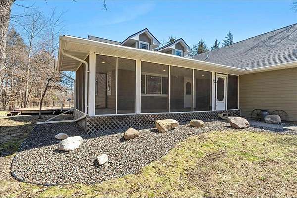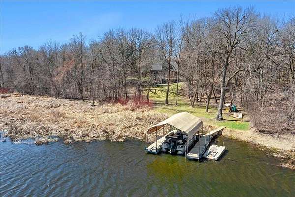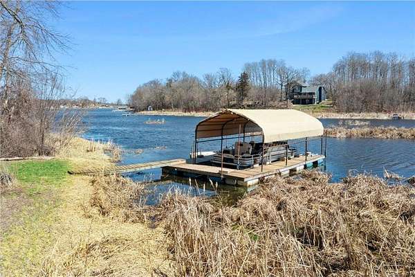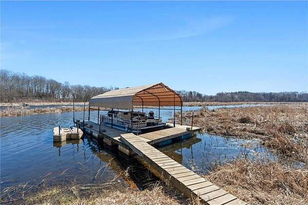 Tucked away on a quiet dead-end road, this one-owner home sits on 2.9 private acres along Locke Lake (fishing lake), offering peaceful waterfront living in a protected bay with a voluntary no wake zone for added tranquility. Enjoy beautiful views from the screened front porch, expansive deck, or paved patio, with a covered boat slip included for convenient lake access. The open floor plan features a mission-style kitchen with maple cabinetry, updated appliances, and luxury vinyl plank flooring throughout the main level, along with a two-sided gas fireplace and a main floor primary suite with a private bath and jetted tub. The finished walkout lower level is ideal for entertaining with a wet bar and beer taps. Both the home and the impressive 40x50 heated and insulated shed offer maintenance-free exteriors, with the shed also featuring floor drains and oversized doors for exceptional storage, hobbies, or workspace. Recent updates include new roof and siding in 2025, new carpeting in 2026, and central air approximately five years old, plus a heated 3-car attached garage. Welcome Home!