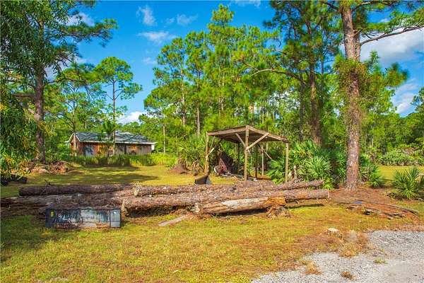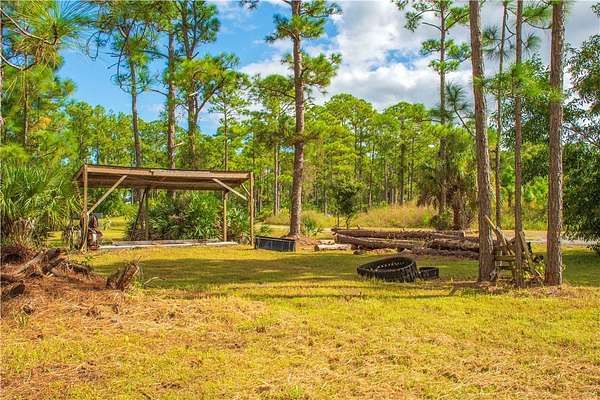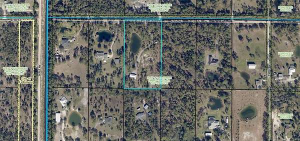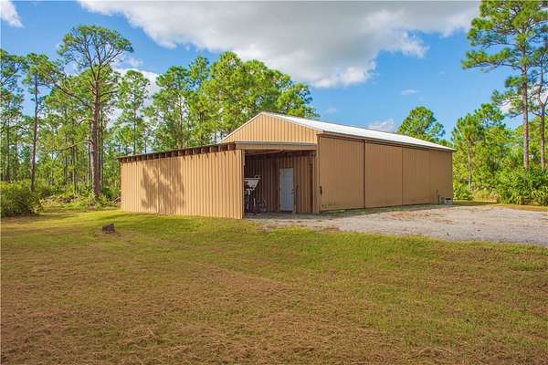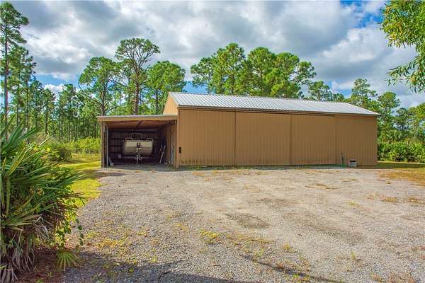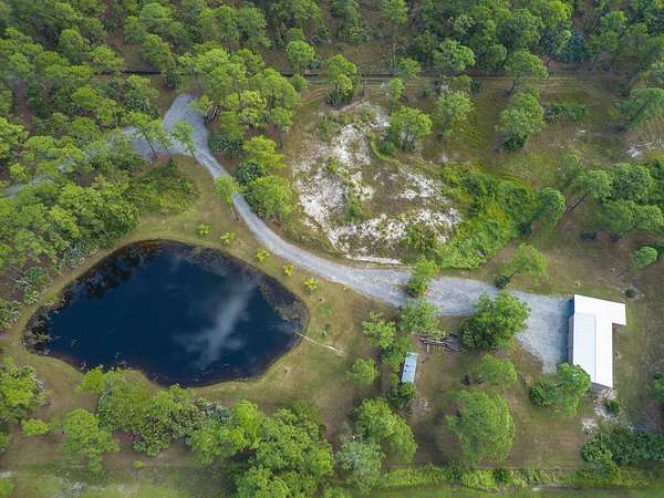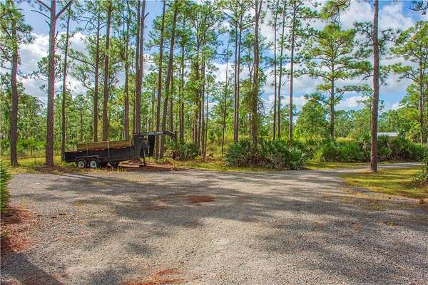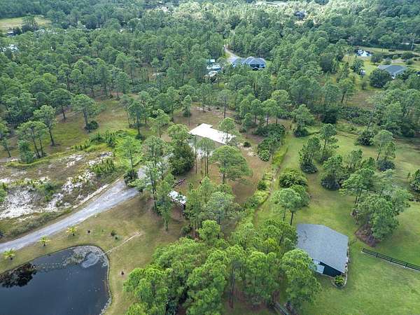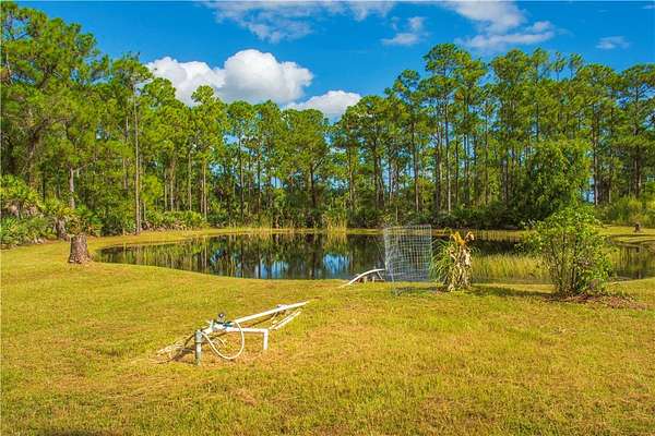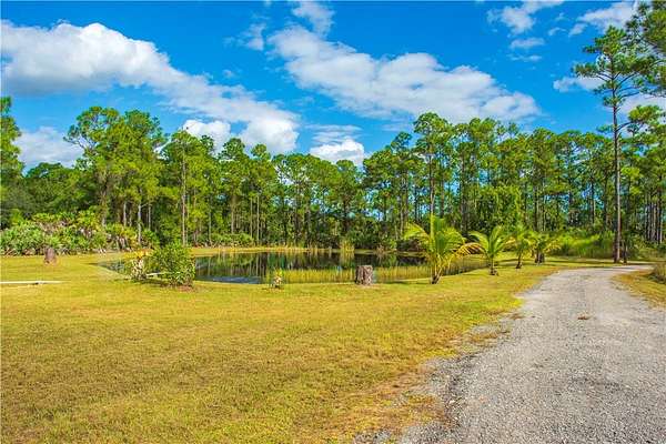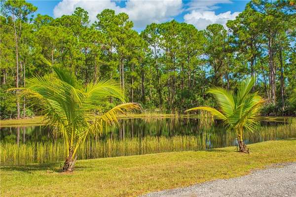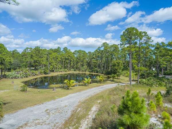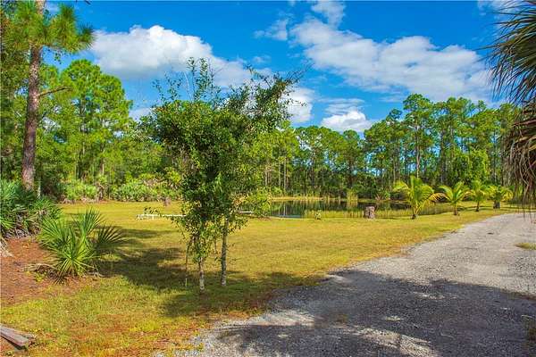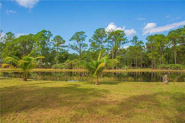 A 5 acre tract that you'll be sure to love after you look at the photos that were taken from above. Land features artesian well fed 1/4 acre pond with barn/storage building measuring 48x24. This building has 3 sliding door openings measuring 11 wide x 10 ft high. and a separate covered "lean to" that measures 35x14 and 9 ft high in middle. Driveway millings. Completely fenced property with a separate well installed with timer that waters palm trees around the pond area. Generator included that runs a separate existing fresh water well. Plenty of room to build your country dream home. Let's go!