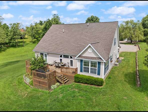 Est $2,355/moNested on a little over 3 acres, this 3 bedroom, 2.5 bath home features ample storage, an inviting foyer with a study/den and large living room great for entertaining . The spacious master suite includes an en suite bathroom with a beautiful walk in shower. More great features included are the 2 detached garages ready for your work shop and/or storage, along with a 2 car attached garage. The front porch and deck areas boast picturesque views of the rolling acres, creating a tranquil atmosphere. An expansive deck, accessible from the kitchen/dining room as well as the master bedroom, provides ample space for entertainment and relaxation. This home is a must see!