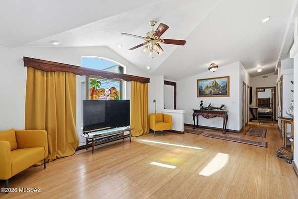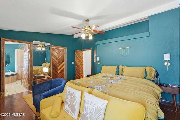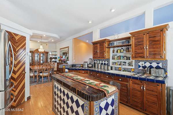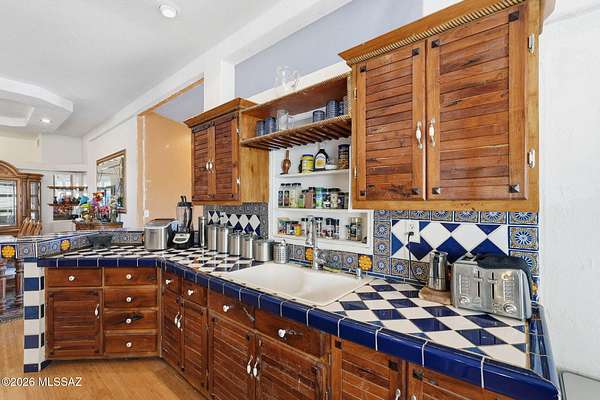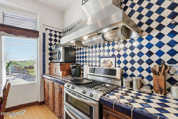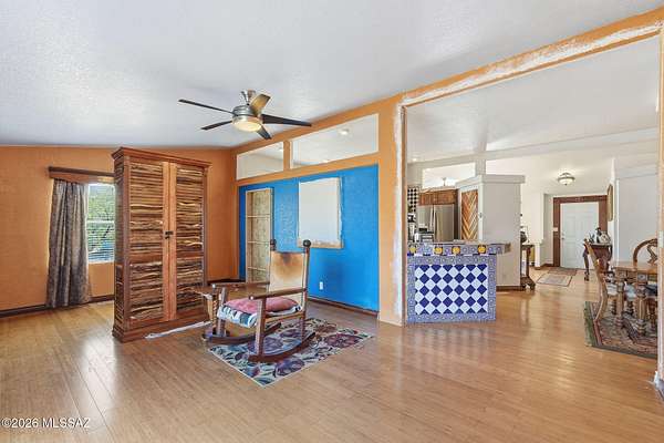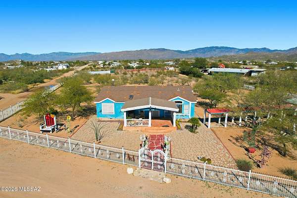 An extraordinary luxury retreat designed for living on 2.11 acres-the largest lot in the neighborhood. This one-of-a-kind, museum-inspired residence offers 2,100 sq ft of beautifully curated space, blending timeless craftsmanship with everyday comfort. Step inside to rich, high-end bamboo flooring throughout and stunning Red Pine doors on all four bedrooms. With 4 bedrooms and 3 bathrooms, this home offers room for everyone to relax, grow, and gather. The heart of the home is a showstopping, authentic Mexican-style chef's kitchen, featuring handcrafted mesquite wood cabinetry, custom Mexican tile accents, and a striking ironwood island-perfect for family meals, entertaining, and creating memories together. Enjoy peaceful mornings and magical evenings with breathtaking mountain views from sunset to sundown. The patio deck off the family room invites indoor-outdoor living, while the beautifully maintained backyard provides space for play, relaxation, and celebration. The impressive 35x40 workshop accommodates up to four cars and includes a studio-style living area with its own bathroomideal for guests, a home business, multigenerational living, or creative pursuits. Fully enclosed with over 700 feet of elegant wrought iron fencing, this property offers privacy, security, and open space rarely found. Conveniently located within walking distance to the Vail Unified School District office. This is more than a homeit's a lifestyle of beauty, comfort, space, and connection.