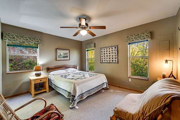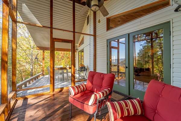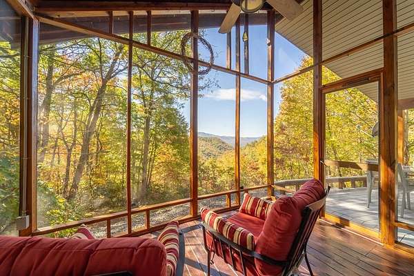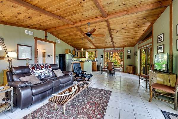 Tucked away at the end of the road on 7.8 peaceful acres at 2,960 feet in elevation, this furnished 2-bedroom, 1.5-bath mountain retreat offers the kind of privacy & serenity that's hard to find.With nearly 1,700 feet bordering U.S. Forest Service land, you'll have direct access to over 106,000 acres to hike, hunt, & explore--right from your own backyard. Step inside & feel instantly at home beneath the gorgeous tongue-&-groove vaulted ceilings that fill the living area w/ warmth & character. Sunlight pours through the windows, highlighting the open layout & cozy corner gas fireplace. The kitchen offers generous cabinet & counter space, a center island w/ gas range, & an adjoining dining area that's perfect for gathering w/ friends & family. Two comfortable bedrooms, a full bath, & a convenient half bath w/ laundry complete the interior. Outside, you'll love spending quiet mornings on the screened porch & soaking up the southwestern views & golden sunsets from the covered deck. The mostly wooded lot provides just enough yard to enjoy, w/ plenty of parking for guests. Offered furnished, this inviting mountain getaway is ready for you to move in, unwind, and start making memories!