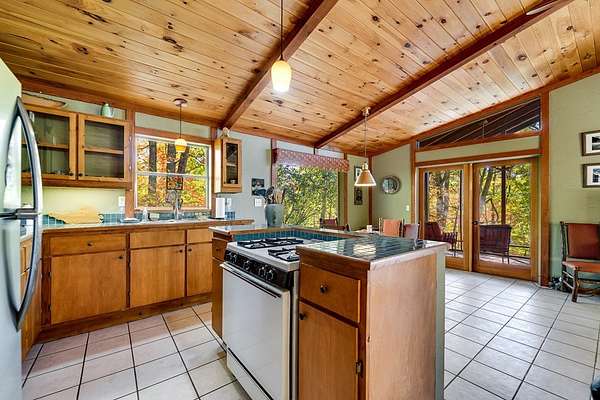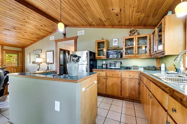 - Cathedral/Vaulted Ceiling, Ceiling Fans, Cell Service Available, Ceramic Tile Bath, Country Kitchen, Kitchen/Dining Room, Main Level Living, Primary On Main Level