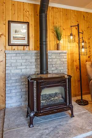 Just steps away, a detached oversized garage offers ample workspace and includes a cozy hobby room with a wood-burning fireplace, ideal for creative projects, year-round comfort, or extra storage. There's even RV parking and an expansive concrete drive for all your vehicles and toys.