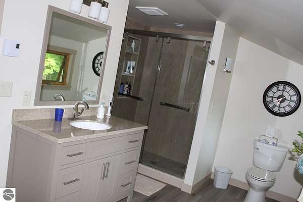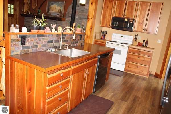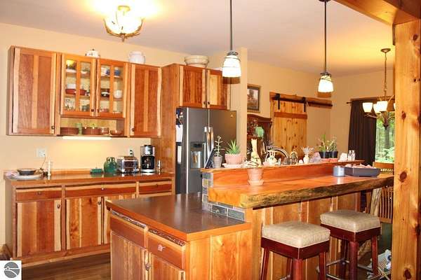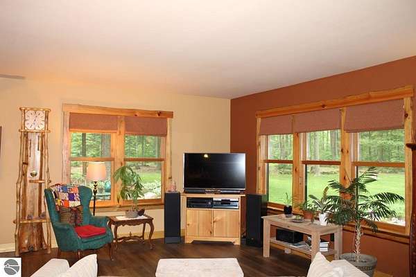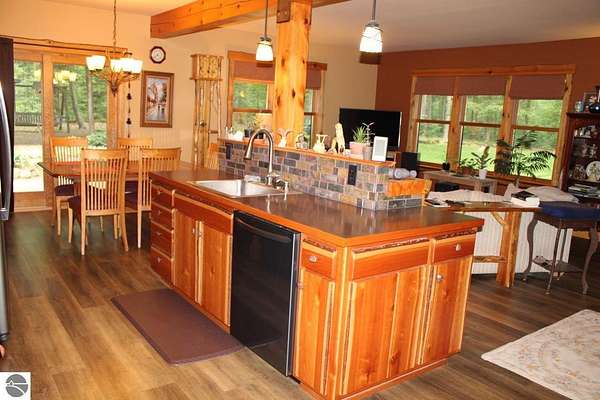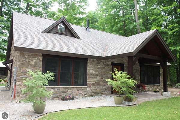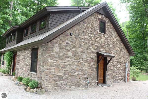 Looking for that Upnorth Retreat, or full time Place. Quality & Attention to Detail a Must... I Say Welcome Home!! 2 Bed, 2 bathroom cultured stone exterior with cedar shake dormers. New shingles 2020, Marvin windows throughout ( Alum clad with pine interior), 24' x 24' detached garage with storage loft, 16' x 24' heated workshop with 16' x 21' attached garage. Irrigated garden, Koi pond & More. Inside home Kitchen, Dining & Living room have an open floor plan with 8 1/2 ft + ceiling height. True stream internet is in the process of being installed . Must see to truly appreciate... Qualified Buyers only please..Torch Lake 15 minute ride, Flintfields Horse Park & T.C. 1/2 hour away... True Stream (Fiber Optic) installed 3rd week of Sept.Did I mention State Land is across the Road.