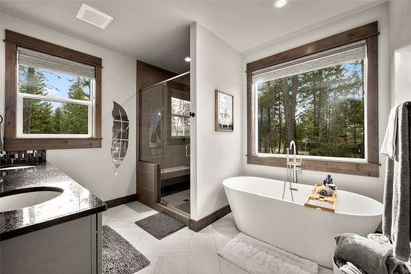 Welcome to 1396 Whitefish Village Drive in the highly coveted Whitefish Hills Village community. This updated and stunning 4 BR/4 BA home features 3,612 sq ft across 2 levels of immaculate and thoughtful design, situated on 2.12 landscaped and private acres. Offered with indoor and outdoor furnishings this home is move in ready. Upgraded Viking Appliances, top of the line Audio/Visual, full smart-home capabilities, a sprawling outdoor living area, and a backup propane generator offer luxurious living and peace of mind. Two spacious primary suites and two laundry rooms give ease of living. Vaulted ceilings with floor to ceiling windows in the main entertaining area flow into the chef's kitchen while the large flex space above the garage provide room for a home gym or space for all your hobbies. The garage has been professionally done with storage and epoxy floors to compliment the fine finishes of the house. Don't miss on this incredible offering. Whitefish Hills Village features 152 acres of community space with walking trails, a beautiful pond, and amenities including paved roads, community water, natural gas, cable TV, and high-speed internet and a homeowner's RV/Boat storage lot. Guest homes are acceptable at Whitefish Hills Village and plans can be provided for a 4 car garage with a 1 bedroom apartment, entertaining area, and wet bar. The neighborhood is centrally located just minutes from Whitefish, Glacier International Airport, Kalispell, and Glacier National Park.