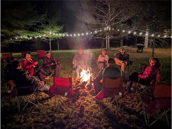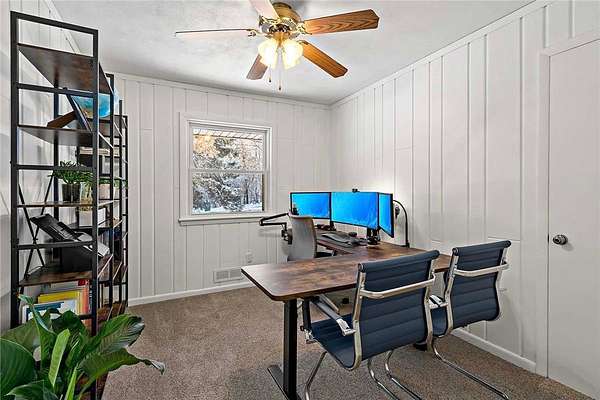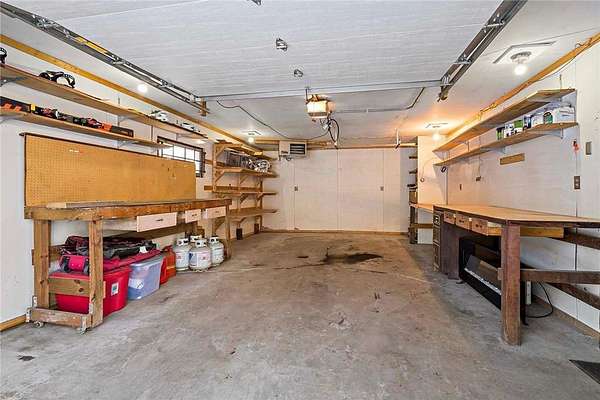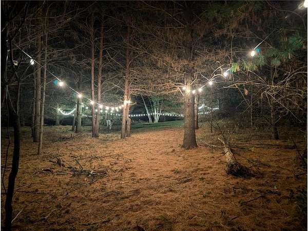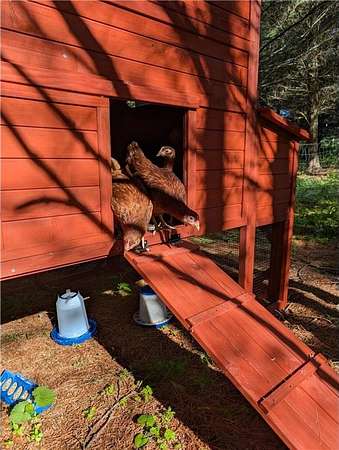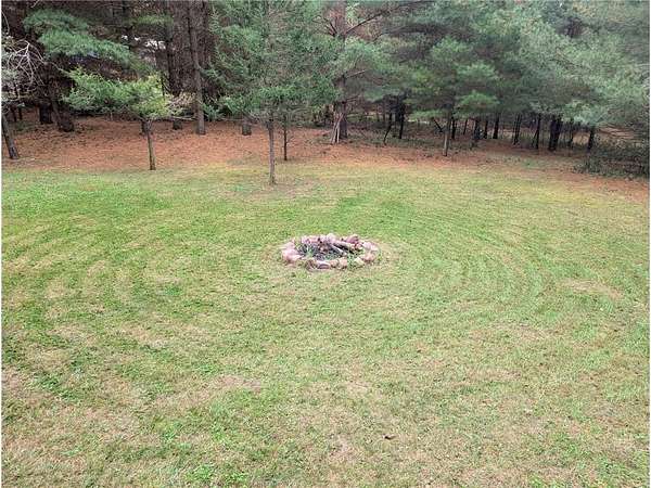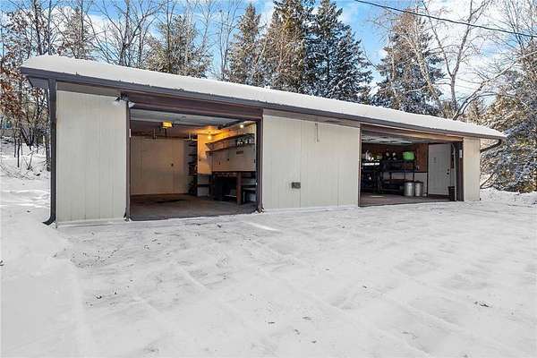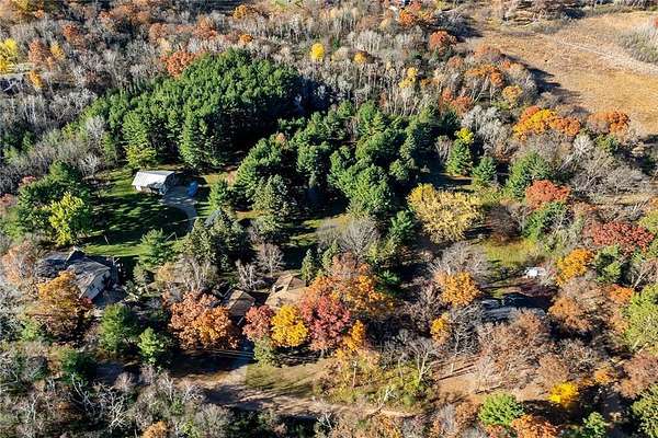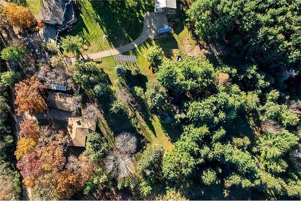This property shines outdoors. The wooded acreage has been carefully improved with buckthorn removal and a newly created clearing that's become a favorite gathering spot. Evenings are spent around the fire pit, under string lights, with friends and family lingering long after sunset. The land itself is alive with wild oregano, yarrow, strawberries, and a productive apple tree that yielded over 10 gallons of apples, reinforcing a lifestyle rooted in nature and abundance. The fully insulated third garage stall doubles as a heated workshop with 110/220 electrical. Three outbuildings--a 12x16 shed, a two-story 16x32 barn, and a woodshed--offer space for storage, hobbies, or creative pursuits, with the barn fully powered and ready for use. A charming wooden chicken coop, new in 2025 and stored in the barn, adds a touch of country character. Parking is abundant with three garage stalls, a main asphalt driveway, and two additional driveways providing ample room for toys, trailers, or guests.