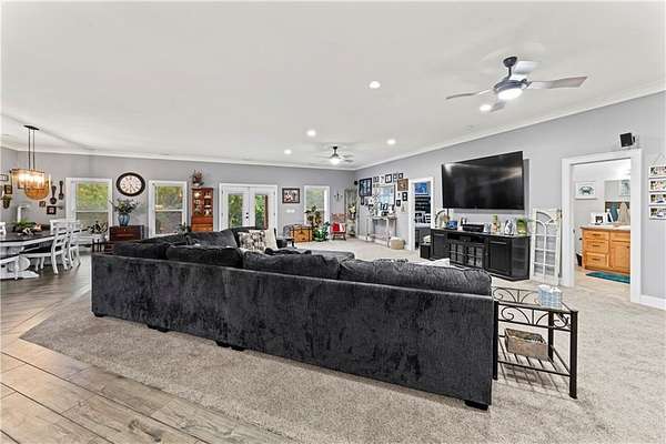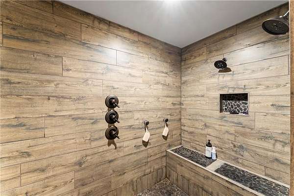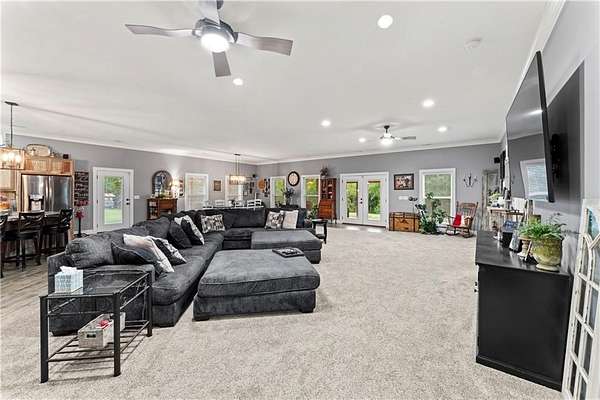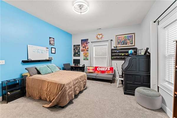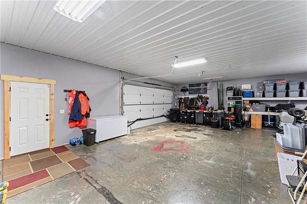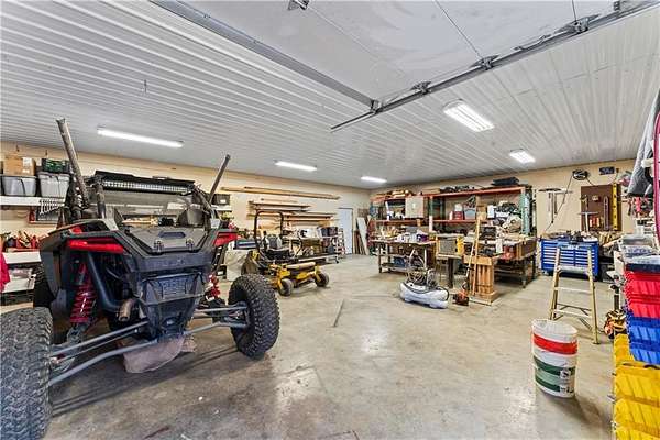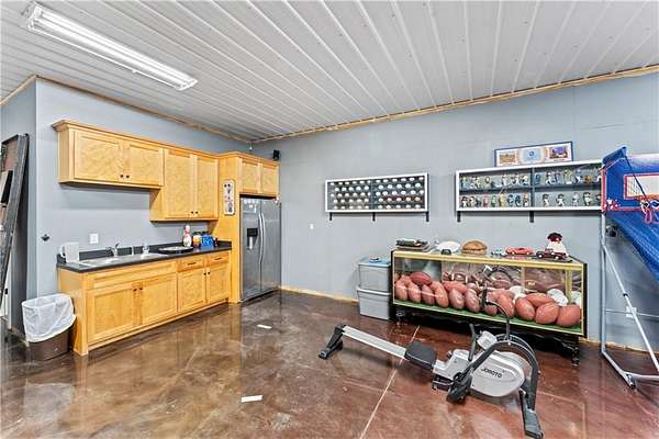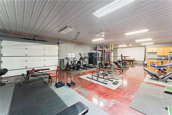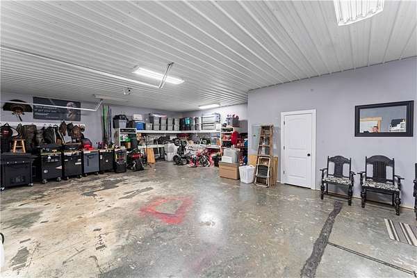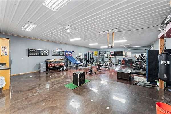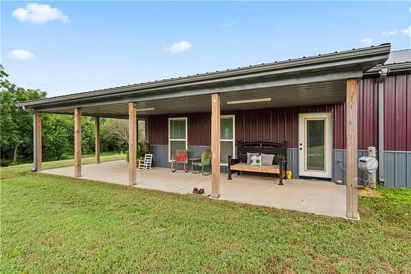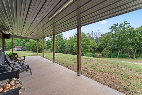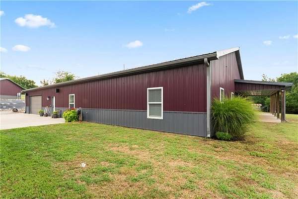 Tucked away on 45.5 wooded acres, just 40 minutes from Overland Park and less than 5 minutes from Drexel, this one-of-a-kind retreat delivers million-dollar views and unmatched privacy. The custom-built, maintenance-free home offers over 3,000 sq. ft. of thoughtfully designed living space, blending high-end comfort with the beauty of nature. A wraparound porch overlooks a wet-weather creek, mature timber, and an ever-changing backdrop of wildlife. Inside, the massive great room is perfect for gatherings, anchored by a striking gourmet kitchen built for entertaining. Quality craftsmanship is evident throughout, with 2x6 construction, spray foam insulation, 10 ft.. ceilings throughout, oversized doors, custom windows, and rich woodwork. The primary suite offers an oversized walk-in shower, dual sinks, and walk-in closet, while every room, including the oversized garage, feels spacious and inviting. Outdoors, enjoy your own private paradise with a custom fire pit and over two miles of trails for exploring. A 30x40 insulated metal shop with a concrete floor provides space for equipment or hobbies. For even more, the property includes a 30x55 private gym or recreation building with a kitchenette, full bath, and a large theater area, ideal for movie nights, workouts, or hosting friends. With wide-open skies, modern amenities, and complete seclusion, this is a rare opportunity to live the ultimate outdoor lifestyle, without compromise. Follow the winding driveway and discover your new sanctuary. Home is priced below appraised value.