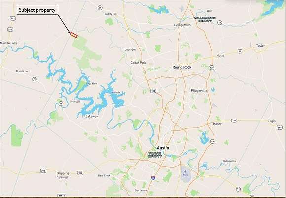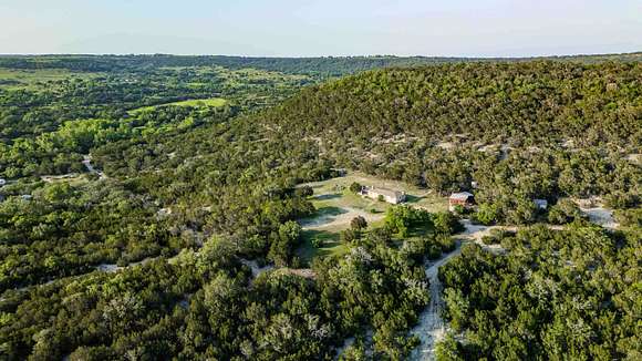 This 405-acre Hill Country ranch is surrounded on two sides by the Balcones Canyonlands National Wildlife Refuge. The property is located in the Balcones Canyonlands area, just east of Marble Falls and just on the western edge of Travis County. The area is well known for its spectacular Hill Country views and scenic countryside and this property has it all. It is unrestricted, rugged and ready for new ownership. Potential uses include a family recreational ranch or homesite, subdivision into large tract homesites or commercial operations such as glamping, rental cabins or other recreational type development. The property includes a 1400 sqft livable cabin with water well, electric and septic and two smaller, approximately 500 sqft cabins that need work. Wet weather Cottonwood Branch Creek runs through the property and drains into the well-known live water Cow Creek not far away. Elevations range over 320 feet on the ranch from a low of 1,020 feet at the bottom of Cottonwood Branch on the south side of the property to a high elevation of 1,340 feet on the northeast part of the property. These elevations allow for panoramic views of the surrounding Hill Country with multiple high locations and multiple canyons. The terrain is rough, rocky and dramatic and includes some very interesting limestone shelfs and outcrops. The property is currently used for grazing and recreation. 1-d-1 agricultural tax valuation is held via a grazing lease keeping the taxes low.