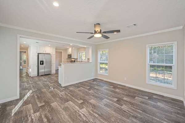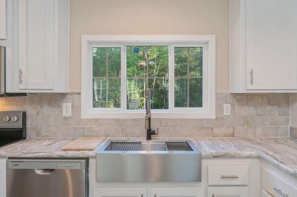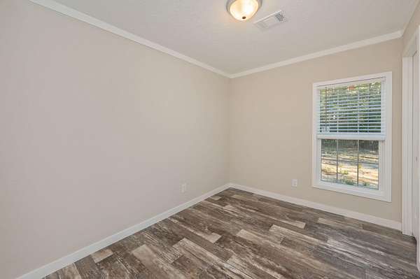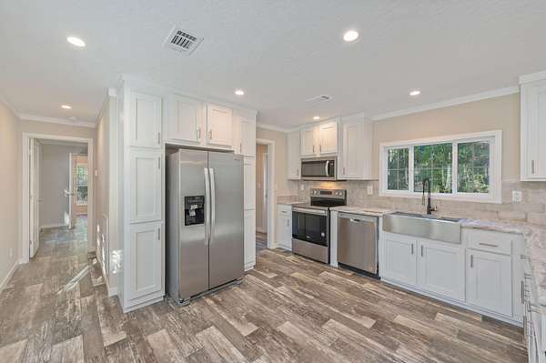 Escape the noise and discover your own private retreat. Set on 2 fully fenced acres, this 3-bedroom, 2-bath home offers rare space and serenity. Whether you dream of cultivating a garden, raising chickens, or simply enjoying open land without neighbors right on top of you, this property invites you to live closer to nature. The covered front deck is the perfect place to start and end your day in peace. Inside, the home features a desirable split floor plan that provides both privacy and functionality. With no carpet throughout, you'll enjoy a clean look that is also easy to maintain. The kitchen is equipped with stainless steel appliances, ample cabinetry, a beautiful backsplash and a convenient breakfast bar ideal for casual dining or entertaining. The spacious master suite offers comfort and practicality with his and hers closets for generous storage. The ensuite bathroom includes ample cabinet space, a walk-in shower, and a double vanity, creating a relaxing and well-designed retreat.
