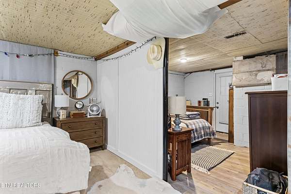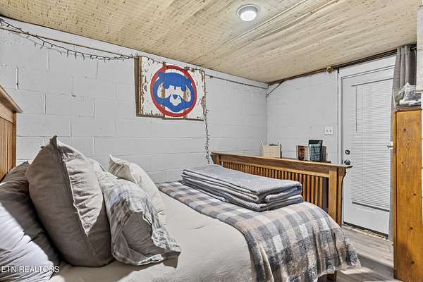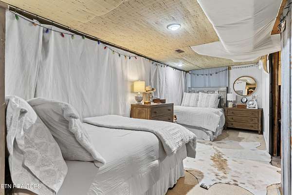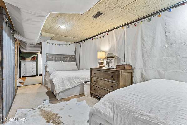 The finished basement expands the living space even further, currently set up as a comfortable guest area with three full-sized beds and a full bathroom, making it perfect for hosting family and friends.