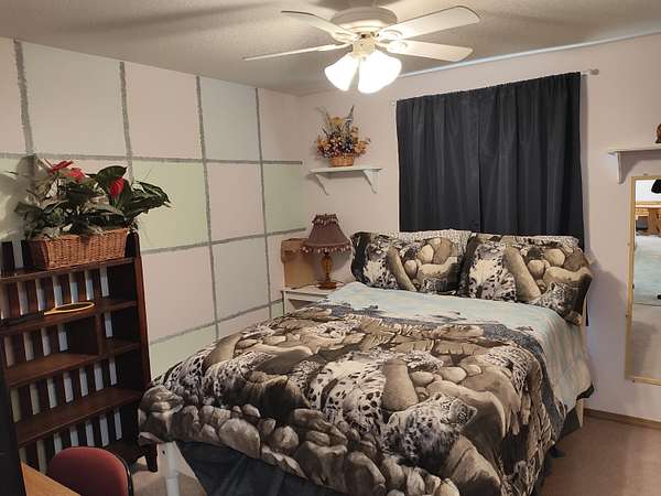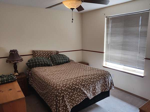 - Breakfast Bar, Ceiling Fan(s), Fiberglass Stall Shower, Laminate Counters, Linen Closet, Open Floorplan, Primary Downstairs, Shower/Tub Combo, Solid Surface Counters, Vaulted Ceiling(s), Walk-In Closet(s)