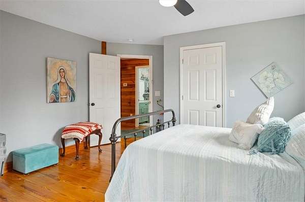 Step inside to an inviting open layout featuring an updated kitchen with modern appliances and plenty of storage, perfect for everyday living or hosting. The living room's striking stone fireplace sets the tone for cozy gatherings, while the spacious master suite feels like a retreat with French doors leading to the wraparound porch. The upgraded master bath completes the space with spa-like finishes.