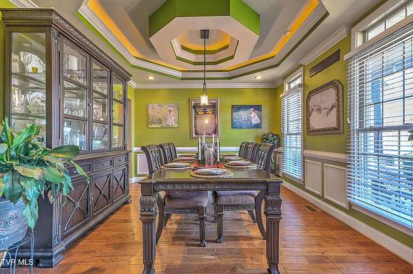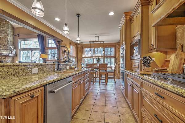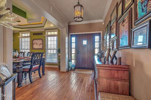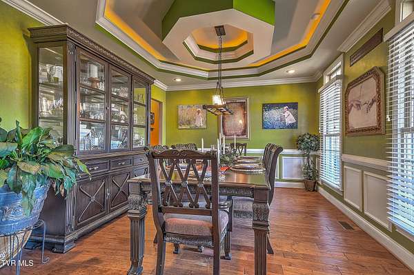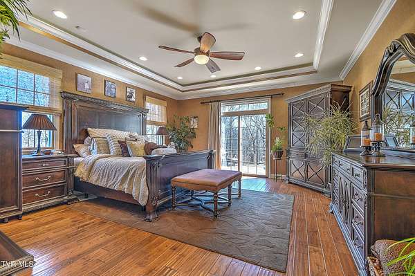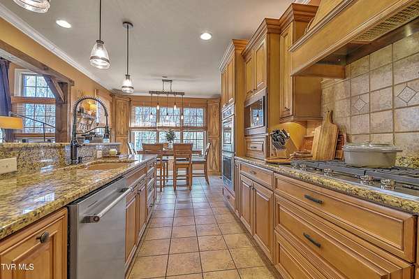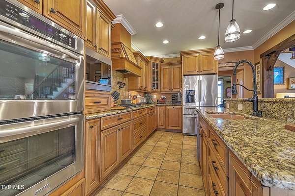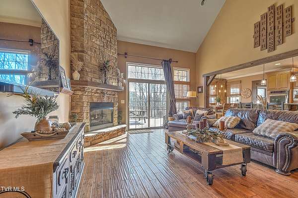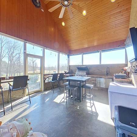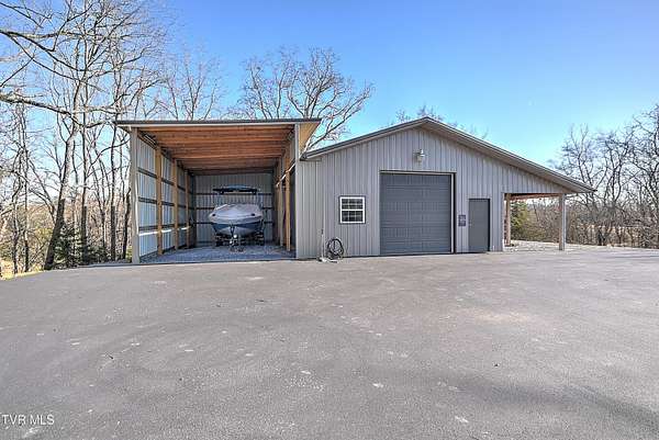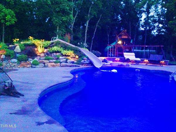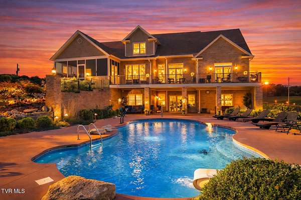 Private Gated Mini-Estate | 11+ Acres | Elevated Luxury Living in East Tennessee A winding gated entrance welcomes you to 11+ breathtaking acres surrounding this stunning custom-built Frank Betz residence offering more than 5,500 square feet of thoughtfully designed living space in beautiful East Tennessee. Ideally positioned in the highly desirable Tri-Cities region, just minutes from Tri-Cities Airport, this exceptional estate combines privacy, convenience, and timeless craftsmanship. Expansive acreage on all sides provides remarkable seclusion along with the flexibility to create a private family compound while preserving sweeping mountain views and the natural beauty of the surrounding landscape. Meticulously maintained grounds are supported by a full-property irrigation system and enhanced by extensive professional landscaping. The outdoor living experience is truly resort-inspired, featuring a tranquil waterfall pond, custom stone fire pit, heated pool, hot tub, outdoor television, and expansive composite decking. A screened porch with a fully equipped outdoor kitchen creates the perfect setting for hosting gatherings year-round and enjoying all four seasons of East Tennessee. Inside, the impressive foyer opens to a dramatic great room showcasing vaulted ceilings, a floor-to-ceiling stone gas fireplace, and rich hand-scraped hardwood floors. Natural light fills the space while the open-concept design allows seamless flow into the gourmet kitchen and dining areas, making the home ideal for both intimate evenings and large-scale entertaining. The gourmet kitchen features custom cabinetry, granite countertops, an oversized center island, stainless steel appliances, a 5-burner gas cooktop with pot filler, double ovens, and generous dining space designed to accommodate large gatherings with ease. The main-level primary suite serves as a luxurious private retreat with elegant tray ceilings and direct access to the rear deck. The spa-inspired bath includes dual vanities, heated tile floors, a jetted soaking tub, oversized walk-in shower, and a spacious walk-in closet. A guest bedroom with full bath, a well-appointed mudroom/laundry area, and a 3-car attached garage complete the main level. Upstairs, custom built-in cabinetry creates an ideal office or study nook. Two bedrooms with walk-in closets share a Jack-and-Jill bath, and a large flex room offers versatility for a secondary den, media space, or playroom. The finished walk-out basement is designed for recreation and relaxation, featuring a billiards room, theatre room, dedicated weight room, flex space currently used as a bedroom, full bath with washer/dryer hookup, and abundant storage. Patio doors open to a covered outdoor retreat with direct access to the pool and hot tub area, extending the home's entertainment potential. At the rear of the property, a substantial detached garage includes pull-through doors, two lean-tos for RV or boat storage, 30- and 50-amp hookups, plus a shower and mud sink. A spring-fed, fully stocked pond enhances the peaceful setting and attracts abundant wildlife, further elevating the estate's sense of serenity. This extraordinary East Tennessee mini-estate offers luxury, multi-generational flexibility, and unmatched space for entertaining -- all while remaining centrally located in the heart of the Tri-Cities.