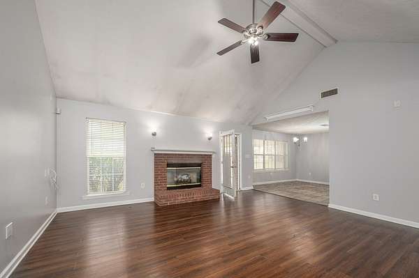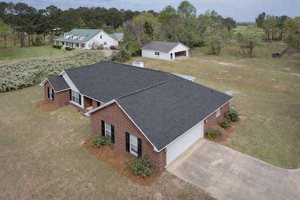 Located in Opelika, AL on 3.68 level acres in Lee County, this brick ranch offers an open floor plan, split bedroom layout, and a range of outdoor features designed for everyday use. The living area with gas fireplace flows into a spacious kitchen with eat-in dining and breakfast bar, while the primary suite includes a double vanity, separate tub and shower, and walk-in closets. A screened back porch overlooks multiple fenced areas, including a large pasture with flagstone patio, plus a separate dog run and firepit area. The property also includes fruiting pear, plum, peach, and pecan trees. A key feature is the detached 896 sq ft heated and cooled workshop with half bath, offering flexible space for hobbies, recreation, or storage. Side-entry 2-car garage. Roof and water heater replaced in 2025. This home is in the sought after community of Beauregard in Opelika and is just minutes from Auburn AL. *360 Tour Available*