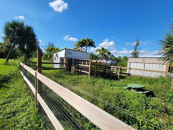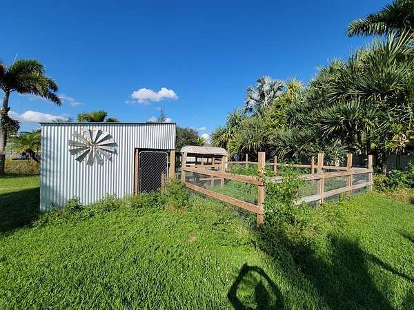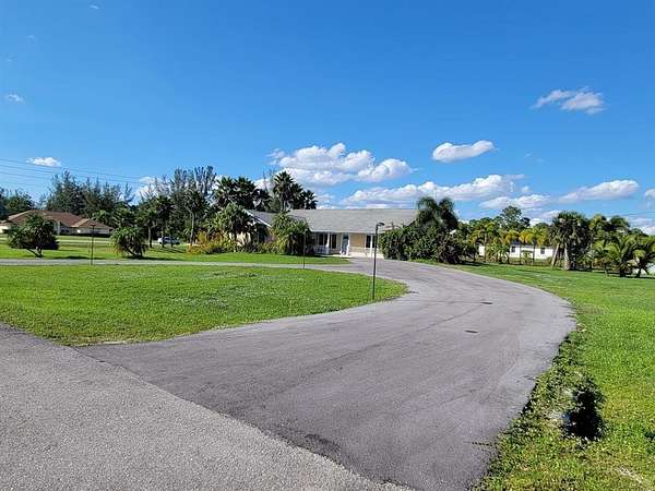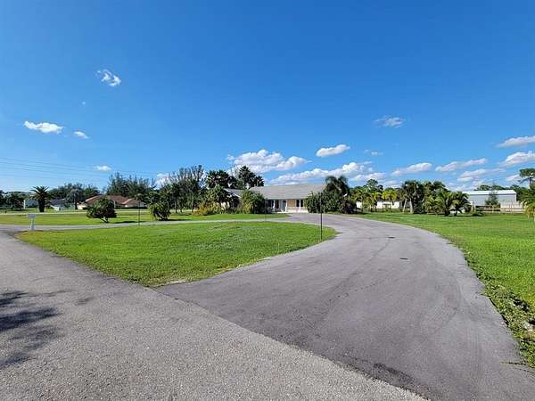 Welcome to this beautifully 3-bedroom, 2-bath home located on 2-acre corner lot with dual paved road access. no HOA restrictions, you can comfortably accommodate RVs, boats, trailers, and horses. Open floor plan with entertaining kitchen with large marble island, SS appliances and soft touch cabinets. Tile and laminate flooring, split-bedroom layout. The primary suite offers a generous walk-in closet. A convenient cabana bath provides direct access to the oversized covered and screened patio. Circular driveway, two-car garage, shutters/storm panels, an automatic generator. The property features a canal-fed irrigation system with pump. Zoned for agricultural tax exemption, this home is on city water and septic, delivering both convenience and long-term value.