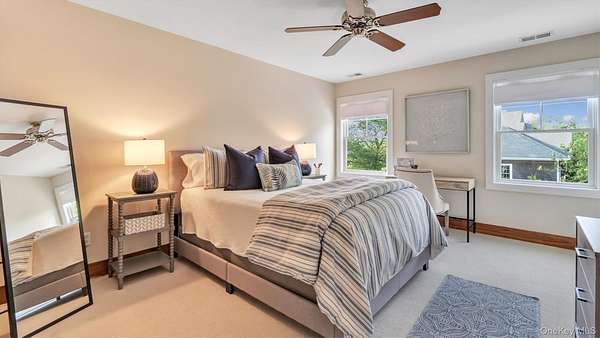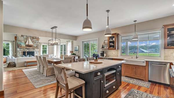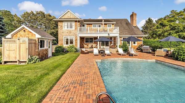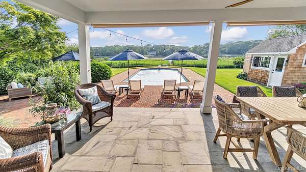 Now booking July 2026. Traditional Post-Modern Creekfront Home offers privacy, water access and plenty of room to entertain. Open concept living room, dining room & newly remodeled chef's kitchen. Main floor living spaces open to covered blue stone porch & pool area with cabana and outdoor shower. Oversized heated, saltwater pool. Four bedrooms/3.5 bathrooms, dedicated office, bonus den/tv room. Direct creek access for kayaking and paddleboarding. Evening sunsets are incredible! Bed setup (2) kings, (1) queen (1) full. Main floor bedroom suite with private bathroom and king size bed. Primary suite on second floor with private deck overlooking waterfront. Attached 2 car garage. It's the perfect time to plan Summer 2026 in the Hamptons.