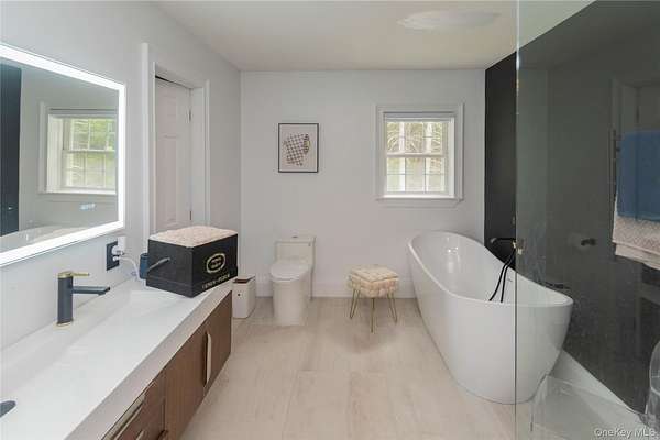 You don't want to miss this one. This move-in ready large colonial home combines thoughtful upgrades with timeless appeal. This beautifully updated 4-bedroom, 2.5 bath home offers the perfect balance of style, comfort, and convenience in the heart of Bethel. The brand new kitchen features butcher block countertops, stainless steel appliances, and a warm inviting design. The first-floor primary bedroom with a newly renovated ensuite bathroom features granite countertops, a luxurious soaking tub, and spa-like finishes. The upstairs bedrooms are large with ample lighting and storage space for all your neccesities. Experience airy, open living with cathedral ceilings and sleek, modern finishes in the main entertaining spaces. The generous yard has plenty of space for relaxation and gatherings. Bonus room upstairs for office, dining, meditation, etc. Convenient location, close to Bethel Woods, Lake Superior, hiking, swimming, dining and more. Great commuter location.