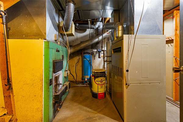 - Forced Air, Natural Gas, Wood, Wood Stove