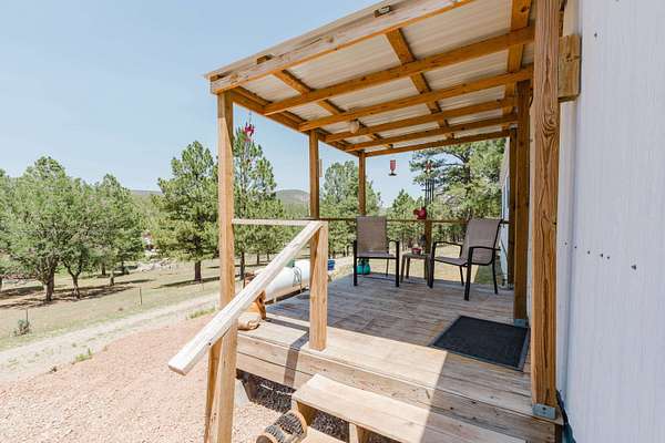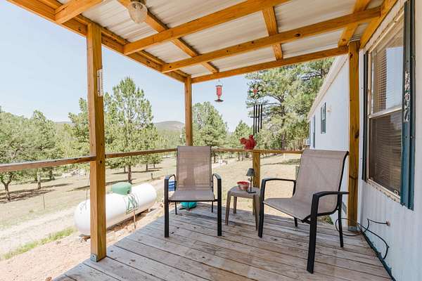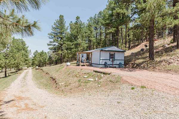 Peaceful Mountain Retreat on Over 5 Acres in 16 Springs Canyon. Tucked away among the tall pines approximately 35 minutes east of Cloudcroft, this charming 2-bedroom, 2-bathroom manufactured home offers tranquil mountain living in the serene 16 Springs Canyon area. Surrounded by over 5 acres of wooded beauty, the property provides unmatched peace, privacy, and opportunities for outdoor adventure. Step inside to a welcoming open living area with vaulted ceilings that enhance the sense of space and light. The primary bedroom includes a private ensuite bathroom, creating a comfortable and functional layout for everyday living or weekend getaways. There are a couple of different spots that could be possible build site for a future home that have already been cleared and driveways cut in. Come out and view this peaceful property and envision it as your own! Schedule your showing today and Check out the 3D Virtual Tour.