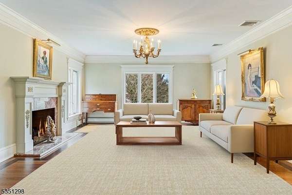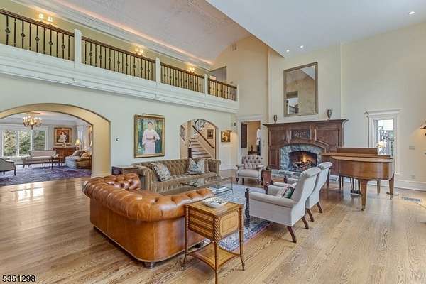 Nestled within the scenic Mendham Borough landscape, this exceptional property presents a stunning 5-bedroom European country estate, meticulously expanded and renovated in 2001 to create an unparalleled living experience. Situated on 6 private acres, this home exudes exceptional craftsmanship and elegance. Inside, the residence showcases extensive custom architectural millwork, wide arched room entries creating an open floorplan, walls of windows allowing for light-filled spaces, random width hardwood flooring, and a recently updated kitchen. The expansive two-story great room features high ceilings, a stone fireplace, and a wall of French doors offering breathtaking views of the surrounding landscape. The 1st-floor primary suite is a luxurious retreat with a sitting room, fireplace, sumptuous bath, and access to the inviting outdoor sanctuary. The 2nd level provides four bedrooms and three full baths. A two-room suite can serve as a 2nd level primary bedroom. The walkout lower level with living room, kitchenette, exercise room, wine cellar, workshop, full bath, and laundry offers ample space for relaxation and entertainment. An exquisite backyard features a bluestone patio overlooking the recently updated pool with spa and tranquil pond with waterfall feature, creating a magical atmosphere. Shopping, dining & recreational opportunities abound in the area as well as equestrian facilities, nationally-ranked golf courses, and excellent public & private schools.