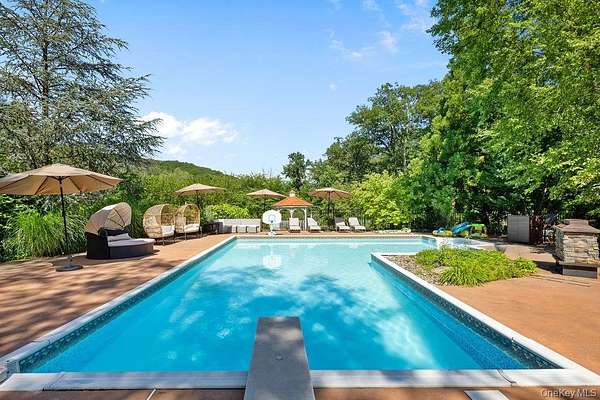 SHANGRI~LA on Blue Note Lane awaits! Nothing compares to this one of a kind custom built colonial estate style home. It is perfectly nestled away on a private road in Stony Point New York. Experience resort style living in this exquisite property with mature manicured landscaping. The remarkable inground heated salt water pool accompanied with the country club size deck was designed to impress. Elegance throughout this home abounds featuring vaulted ceilings, fireplace, hardwood flooring, skylights and recessed lighting. The high-end kitchen with center island was designed for everything an executive chef would require. Luxurious bedrooms and baths with an abundance of closet space situated on each level to accommodate you and all of your guests. Within mere minutes to Palisades Parkway, Harriman State Park, Golf and Country Clubs and all that the breathtaking Rockland County and neighboring Hudson Valley has to offer and explore! Please schedule your showing today. Thank you.