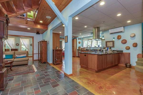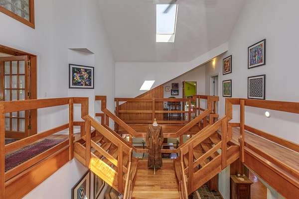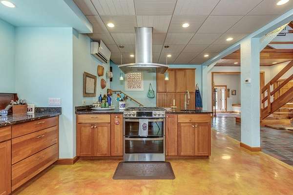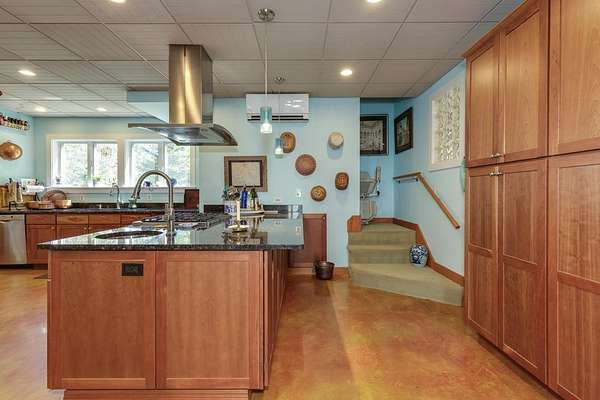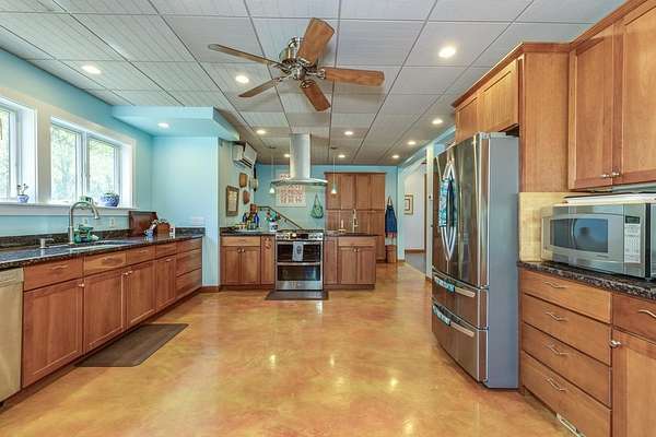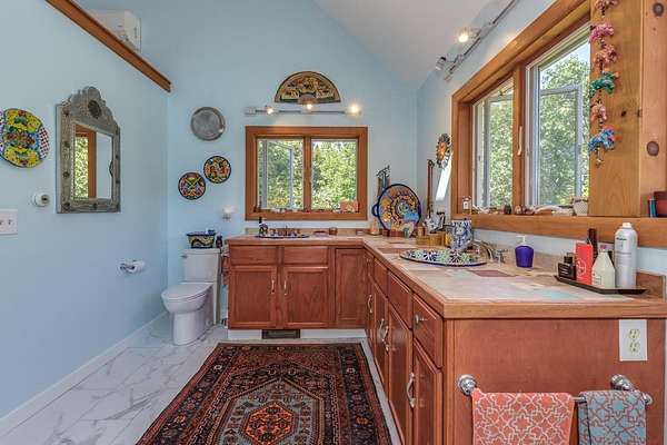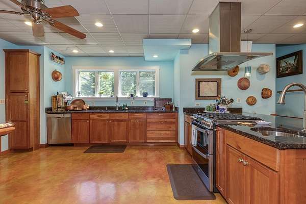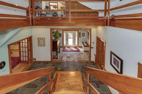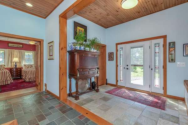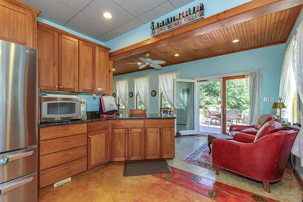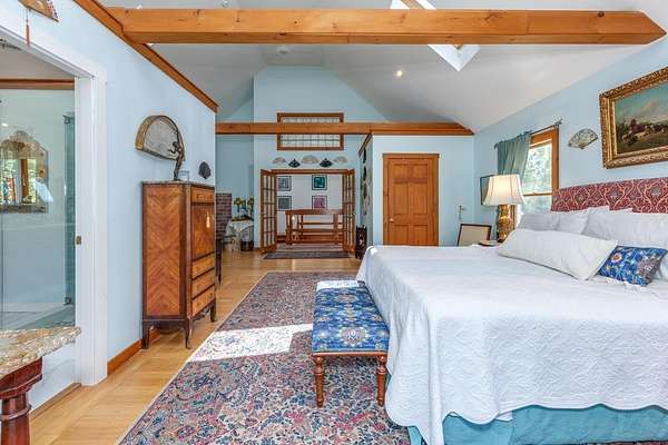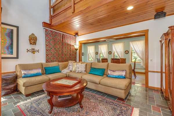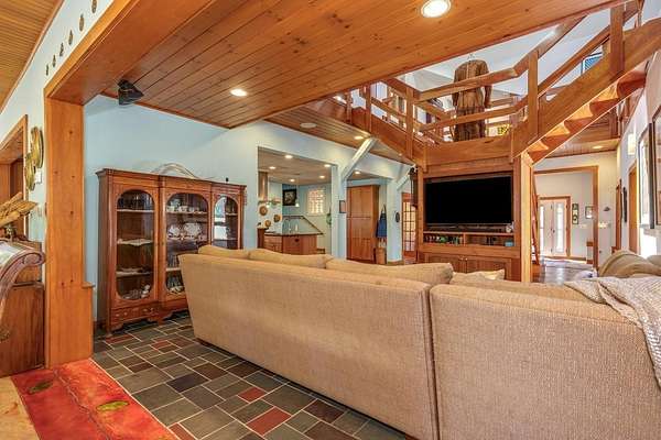 Welcome to ''The Barn,'' a contemporary architectural marvel nestled in the prestigious Tara Estate of Dayton, ME, within the highly rated Thornton Academy school district. This turnkey sanctuary spans over 3,000 square feet of meticulously crafted living space, featuring a massive cathedral ceiling and open concept that seamlessly connects the kitchen, dining, and family areas, perfect for both entertaining and everyday living. The home's centerpiece is a custom cherry-wood stairwell, a functional art piece that anchors the space. The impressive kitchen, equipped with granite countertops and abundant custom cabinetry, is designed for culinary excellence and effortless social interaction, whether hosting a formal dinner or a casual weekend gathering. Enjoy the flexibility of single-level living or aging in place with a first-floor bedroom and 3/4 bath. Radiant heating on the entire first floor ensures warmth during Maine winters. The second floor offers private quarters with a walk-in closet, reading nook, dual sink vanity, and custom shower, along with additional bedrooms for family or guests. A versatile stage-like area is perfect for music jamming, reading, or creative pursuits. A secondary guest/ADU style or teen suite, complete with its own full kitchen, bath, and living area, provides privacy and multi-generational independence. A separate stairway with chairlift ensures accessibility for all ages. The oversized heated 2-bay garage includes a Level 2 EV/Tesla charger, ideal for electric vehicles or workshop space. Outside, low-maintenance, organically landscaped grounds feature dining areas overlooking stone walls and peony gardens. If you're seeking a one of a kind home that defies traditional colonial design while offering unparalleled quality, your search ends at ''The Barn.'' Offering a perfect balance of privacy, outdoor recreation, easy access to city amenities, and convenient transportation options for commuters. 1st showing 4/11 and 4/12 11:00-1:00