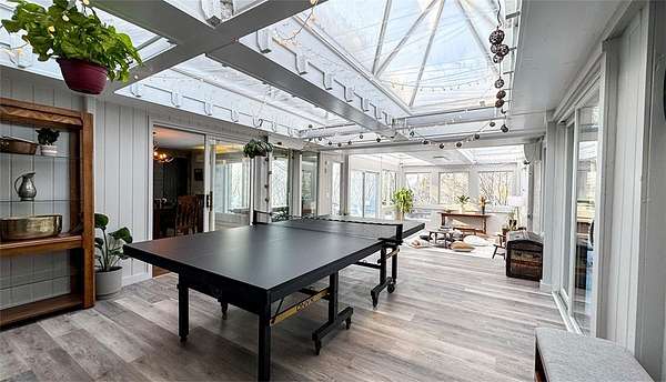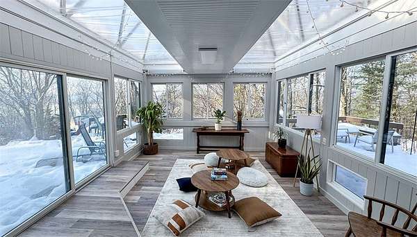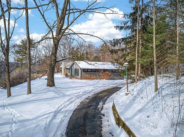 Must-See 4 BR, 3.5 Bath, 3809 sq.ft. Mid-Century Modern in a coveted Cayuga Heights location- Completely Private. 1.92 Acres. Sweeping Winter Lake Views. Daily Sunset Shows. Set back from the road, you'll feel like you're in the country, and yet you're just 5 minutes to Cornell, Cayuga Heights Elementary and Target! $415,000 Meticulous Renovation with Luxury Upgrades - EVERYTHING has been done. The result is a sophisticated fusion of minimalist purposeful design and rustic glam -- giving it warmth and luxurious finishes - building on the original 1955 clean lines and open plan. SINGLE LEVEL LIVING! Walls of glass bring in the Light and the Views. Refinished hardwood floors. Massive Stone Fireplace. The Kitchen is an uncluttered culinary oasis which opens to the spacious Dining, Living & Family Rooms. It features quartz and butcher block counters, island, open walnut shelving, farmhouse sink, Subzero fridge, Wolf cooktop, double wall oven and pantry. SPECTACULAR Family Room/Game Room/Greenhouse-and opens to Wrap-Around Deck. Hot Tub! Indoor-Outdoor Living at its best! Library/Office. There's not one but TWO luxurious Primary Suites! The South Wing Primary has a winter lake view and SPA tile bath with a double shower and two vanities. North Wing Primary 2 is the perfect in-law/guest suite. All New healthy home systems including high efficiency furnace, central AC, whole house dehumidifier, closed cell spray foam insulation plus Mitsubishi mini-splits in the North Wing. (SEE complete list of updates & improvements.) There's a vast open yard, woods, easy-to-maintain perennial gardens with peonies, lilies and more PLUS unique outdoor sculptures on the grounds. A home like no other...when you open the front door for the first time, you just may be stepping into your forever home.
