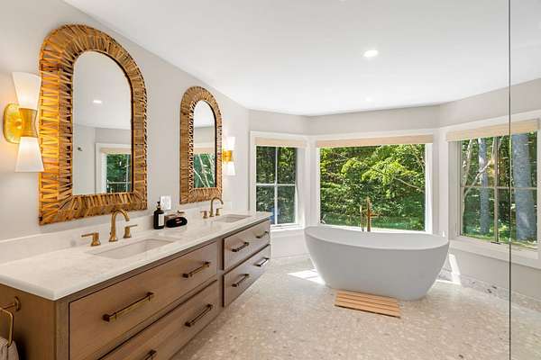 Available August 22-June19 2027. This newly renovated home comes fully furnished with thoughtful and stylish decor throughout. It's located in the Little Boar's Neighborhood of North Hampton which offers convenient access to the ocean side cliff walk along Rt 1A and Bass Beach. The home has a resort-like feel that welcomes you from the moment you pull in and enter into the gracious foyer. The first floor features a designer kitchen with white marble countertops and island seating for 5. The open concept kitchen, dining, and family room is perfect for entertaining. The first floor also has a gorgeous king bedroom suite with a spectacular bathroom and generous a walk in closet. Up the stairs to the second level are 3 additional bedrooms and another stunning king bedroom suite with a walk in closet and an equally beautiful bathroom to the first floor suite. Situated on over 2 acres the property is both private but also convenient with nearby attractions like golf courses, Rye and North Hampton beaches, restaurants, and shopping. Close to schools, PEA and Heronfield Academy.