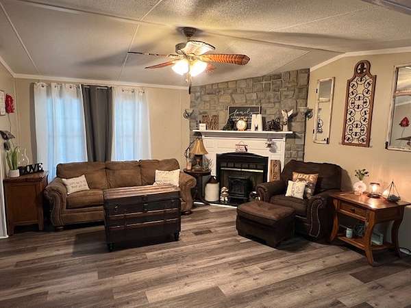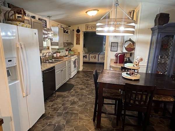 Est $1,449/moReduced! Manufactured Home and 3.88 beautiful acres with multiple shop buildings. Only 5 minutes from town. Fenced back area for pets and privacy. Must see to appreciate the beauty of this property. Home and acreage being sold as is. Contact listing agent for showing.