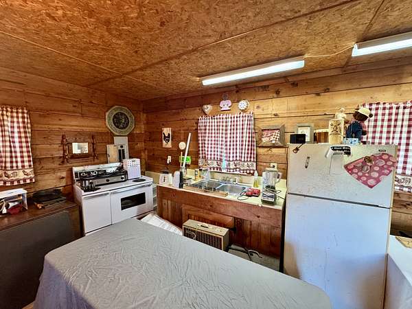 Adding to the property's versatility, there is a second structure originally designed as a bunkhouse that includes a bedroom and bathroom. It is currently used as a craft and hobby building but could serve multiple purposes. A 20x20 shop with garage door provides space for parking, storage, or workshop needs. This unique offering combines acreage, flexible living options, and scenic beauty in a peaceful location Come see it today.