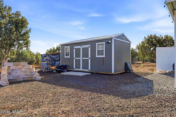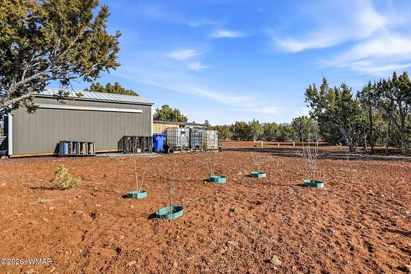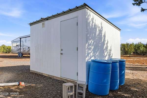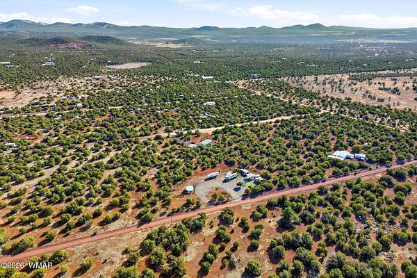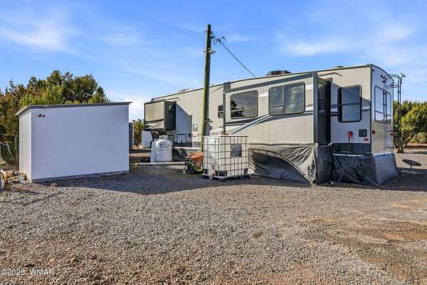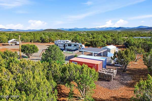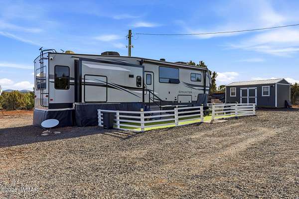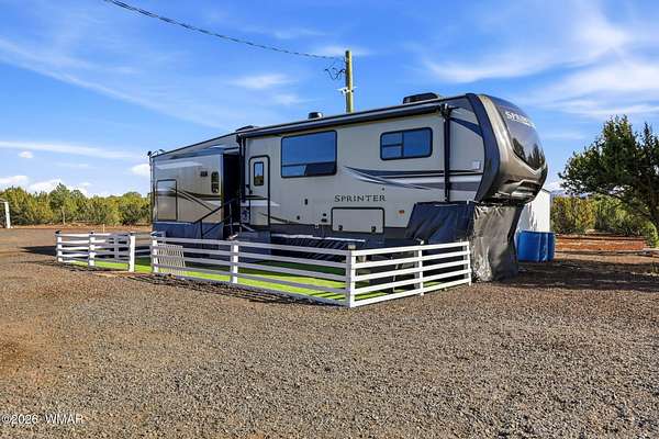 Immaculate 2.31-acre property nestled in a quiet, well-maintained community -- move-in ready and perfectly suited for mountain living! This beautifully maintained parcel offers excellent access, stunning views, and an impressive list of improvements, making it ideal as a private getaway or full-time residence. The property is fully fenced and features two 20-foot drive-through gates for easy access. A septic system designed for a three-bedroom home is already installed, and electricity is in place -- saving you time and expense. The property is thoughtfully equipped with four RV hook-ups (2 30-amp and 2 50-amp), each with electricity and septic connections. Included in the sale is a fully skirted 2020 Keystone Sprinter 5th Wheel in excellent condition, complete with a washer/dryer combo for added convenience. A 1,500-gallon water tank is housed in its own insulated building, with water delivery service already established. Additional improvements include a 20x20 steel awning with a 32-foot windbreak wall, a 20x20 carport, a 10x20 utility shed, and two 20-foot conex containers -- providing abundant covered parking and storage options. The land has been meticulously cared for, with trimmed trees and a thriving apple orchard already established. The survey and septic permits will be provided as well. Enjoy close proximity to shopping and medical facilities, as well as nearby lakes, streams, and endless outdoor recreation. Sunrise Park Resort is less than an hour away, offering year-round activities from skiing and snowboarding to hiking and mountain biking. Experience the cool, beautiful White Mountain climate and all this property has to offer. Fully set up and ready to enjoy from day one, this is an exceptional opportunity combining comfort, convenience, and natural beauty. The hard work and infrastructure are complete -- schedule your showing today!