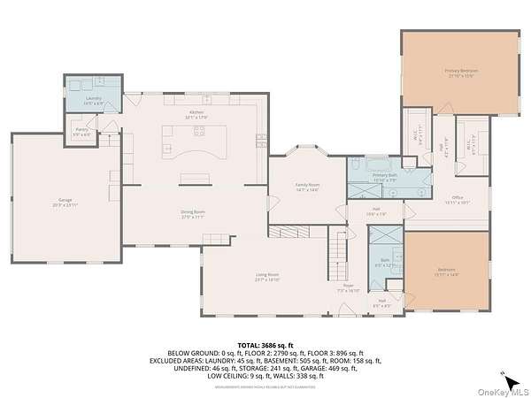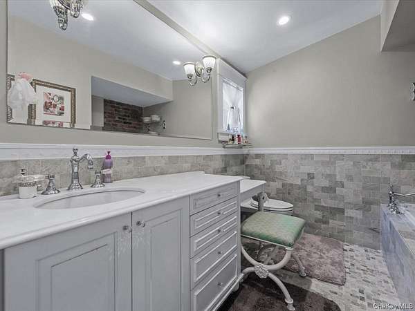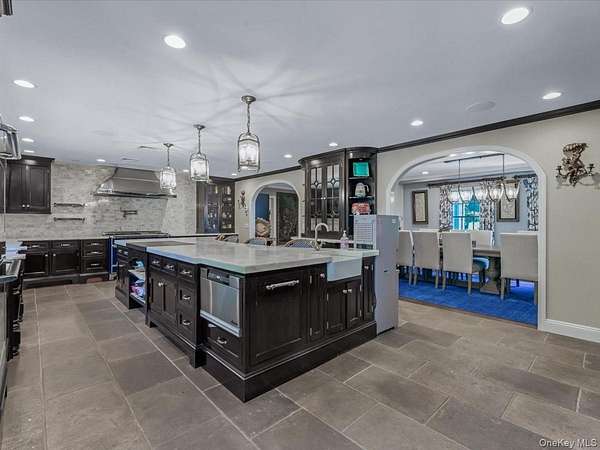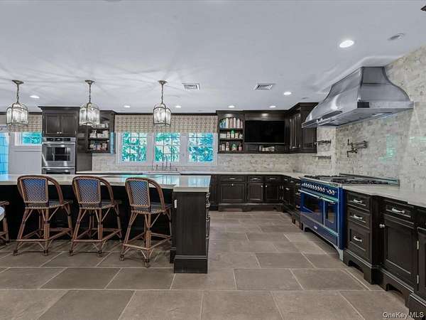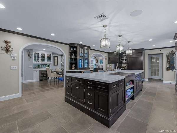 - A chef's dream eat-in kitchen, upgraded over time, with top-tier appliances, a center island, and elegant finishes (marble countertops, built-ins, etc.).