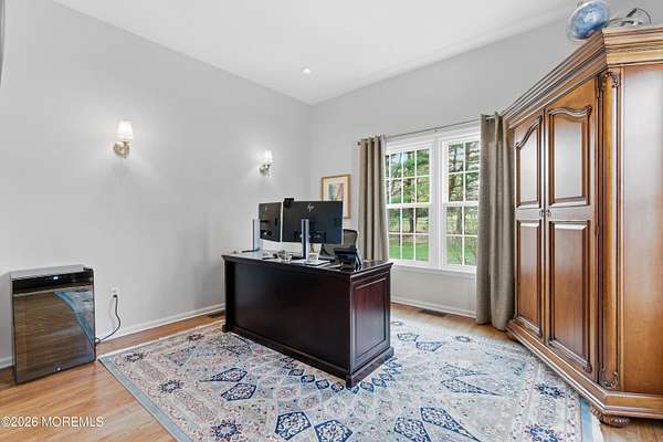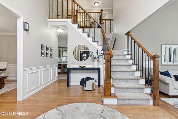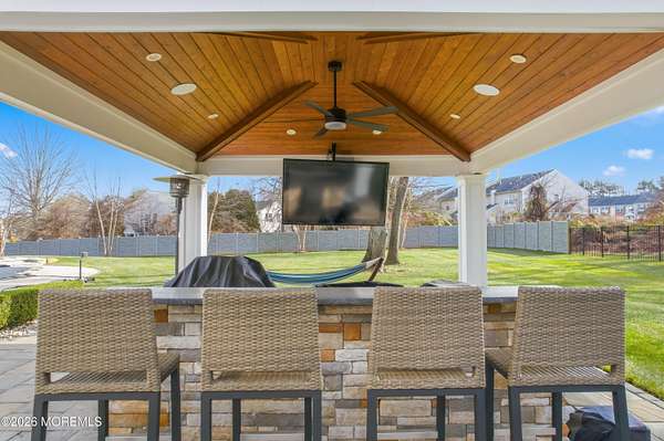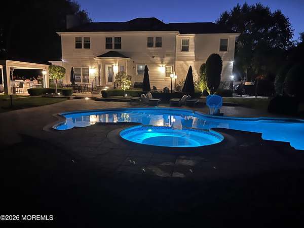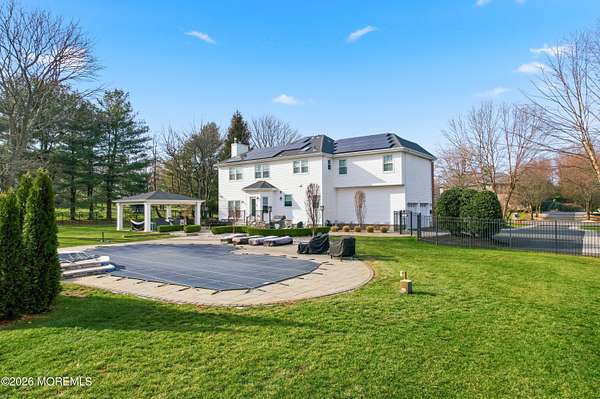 Located in the highly sought-after Windwood Development, this Edinburgh model estate home offers 4 bedrooms and 2.5 baths and is situated on nearly two acres on a quiet, private street. Built in 1997, the home features an open-concept floor plan, soaring ceilings, and abundant natural light, along with approximately $500,000 in thoughtful renovations completed over the last six years. The front entry has been fully redone with a new front door for a dramatic entry, complimented by newer pavers along the main entry and driveway, creating exceptional curb appeal. The beautifully redesigned kitchen showcases quartz countertops, stainless steel appliances, a center island, and flows seamlessly into the main living areas-ideal for everyday living and entertaining. The formal dining room features a bow window with crown and picture-frame moldings, creating the perfect setting for hosting your next gathering. The family room is anchored by a gas-burning fireplace and includes an adjoining side room ideal for a playroom or home office. The second-floor primary suite has been completely redesigned, with the sellers maximizing the space to create custom-built closets and a stunning new en-suite bath with skylight, delivering a true retreat-like feel. Additional highlights include new windows throughout, a two-car garage, partially finished basement, a full-house water filtration system, owned solar panels installed by Trinity Solar (not leased), and a whole-house generator for peace of mind. Step outside to a fully reimagined backyard designed for unforgettable gatherings. This resort-style outdoor space includes a 40,000-gallon recently resurfaced gunite in-ground pool with attached spa, an extended paver patio, new fencing, and custom landscaping throughout. Enjoy evenings under the gazebo with outdoor TV, cook for guests at the permanent gas grill, and gather around the outdoor gas fire pit to stay warm on cool spring, summer, and fall nights. This exceptional home blends luxury, comfort, efficiency, and lifestylean ideal setting for hosting amazing social gatherings that friends and family will remember for years to come.