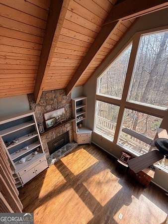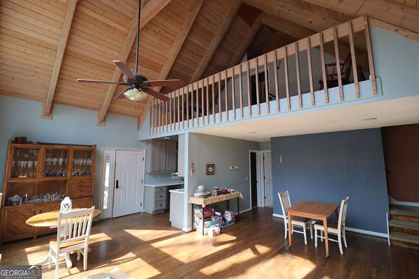 Tucked away in the heart of Sautee Nacoochee, just off Duncan Bridge Road, this charming home offers the perfect blend of mountain tranquility and everyday convenience. Ideally positioned between Helen, Cleveland, and Habersham County, you'll find yourself surrounded by North Georgia's renowned wineries, scenic beauty, and outdoor recreation. Situated on 1.53 acres in the well-maintained Alpine Terrace community, this inviting property provides both privacy and a true neighborhood feel. The home features a flexible and spacious layout with multiple living areas across three levels. The main level hosts the primary suite along with full bathroom, while the upper level offers a loft, an additional bedroom, and a full bath, perfect for guests or a private retreat. The basement includes another bedroom and its own separate HVAC system, making it ideal for extra bonus space. Inside, you'll love the character and warmth of the main living space, highlighted by soaring vaulted ceilings with exposed beams, rich hardwood floors, custom built-ins, and a cozy fireplace that anchors the room. Natural light pours in, creating a welcoming and airy atmosphere throughout. Step outside to enjoy the wraparound deck, perfect for relaxing or entertaining while taking in the peaceful, natural surroundings. Conveniently located near local restaurants, shopping, and endless outdoor adventures, this home offers the best of North Georgia living. Whether you're a first-time homebuyer or looking for a serene full-time residence, this property checks all the boxes. Located in a USDA-eligible area, which also presents an excellent financing opportunity for buyers who qualify. Please note: Alpine Terrace does not permit short-term rentals but does allow long-term rentals. Don't miss your chance to own this beautiful mountain retreat, schedule your showing today!