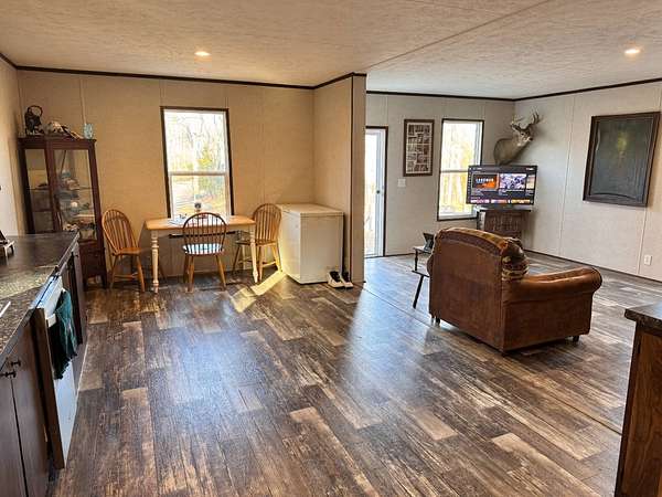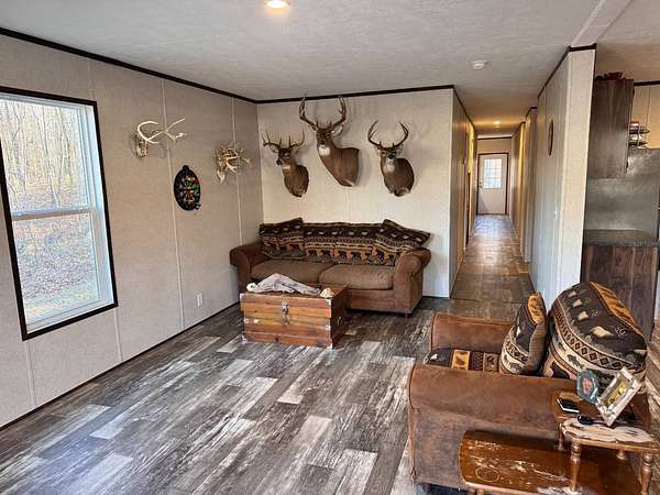 Escape to your own private hunting sanctuary with this exceptional 41-acre wooded property paired with a 2022-built, 1,344 sq. ft. manufactured home offering comfort, privacy, and a highly improved layout for both living and outdoor recreation. Located in one of Southern Illinois' most scenic areas-only minutes from the Shawnee National Forest, Garden of the Gods, and the Ohio River-this turnkey retreat places you right in the heart of endless outdoor opportunities. The home features 3 bedrooms and 2 full bathrooms, with an inviting open-concept design that flows from the living room into a bright, modern kitchen and dining area. Whether you plan to live here full-time, enjoy weekend getaways, or use it as a hunting lodge, the home is clean, efficient, and move-in ready. A new portable garage provides excellent additional storage-ideal for vehicles, ATVs, tractors, boats, or all your gear. Outside is where this property truly shines. The land has been thoughtfully designed and managed to attract, hold, and consistently produce quality whitetails. Key features include: Well-maintained trail system providing easy access to stands, food plots, watering holes, and bedding areas -Multiple established food plots that encourage daylight deer movement -Several watering holes, strategically placed to improve habitat and keep wildlife close -Proven history of big-buck success, with trail-cam photos and harvests to back it up -Rolling topography that naturally funnels wildlife and creates ideal stand locations -Diverse habitat, including thick bedding cover, mature timber, and secluded pockets for both deer and turkey In addition to the 41 private acres, the property adjoins a smaller tract of Shawnee National Forest, opening up even more ground right from your doorstep. Combined with being just minutes from thousands of acres of the Shawnee, the Garden of the Gods Wilderness, and fishing or boating on the Ohio River, this location is truly unbeatable for the outdoor enthusiast. Whether you're looking for a proven hunting property, a peaceful retreat, or a home base for exploring Southern Illinois' natural beauty, this offering delivers it all. Every detail-from the home to the land improvements-has been set up with convenience and outdoor enjoyment in mind. A rare chance to own a modern home on an improved 41-acre hunting tract bordering public land-a place where you can settle in, manage wildlife, and make memories for years to come.