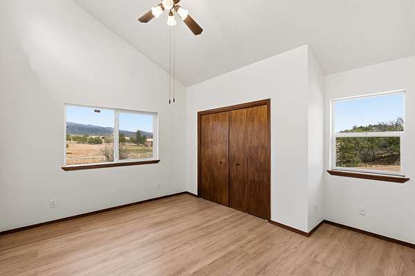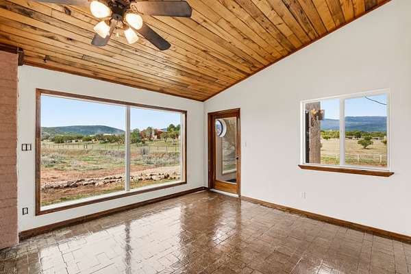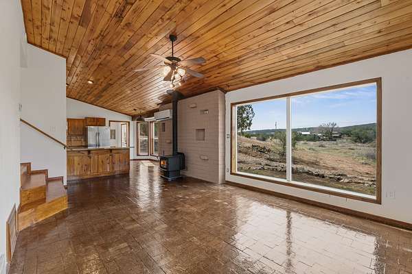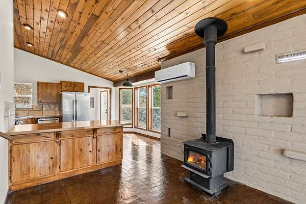 Est $1,692/moJust updated! Open floorpan, two bedroom, one bath home, sited on an elevated two acres twenty minutes from Albuquerque in Sandia Park. So much is new, including propanel roof, new windows, new kitchen appliances, kitchen counters, mini-split, updated bathroom, bedroom flooring. Designed for energy efficiency and passive solar, with a large south-facing window to take in views, a trombe wall to store heat, and a wood stove anchoring the high-ceilinged living areas. Move-in ready.