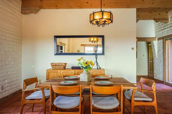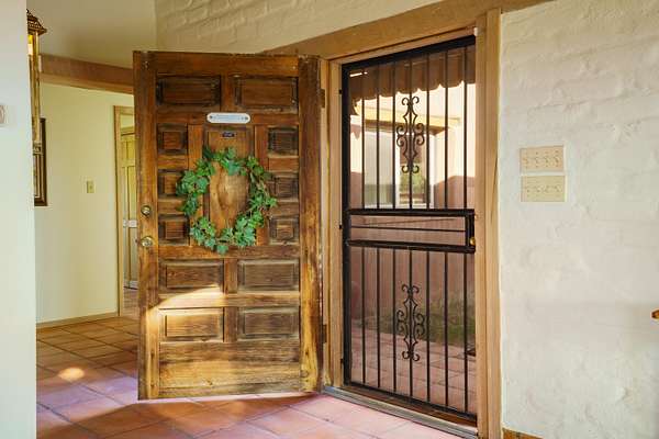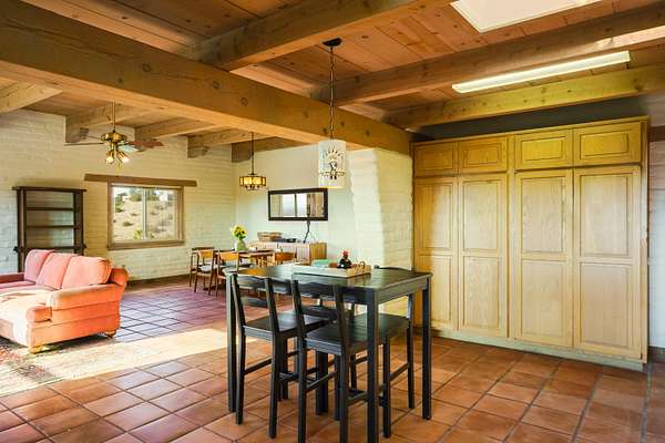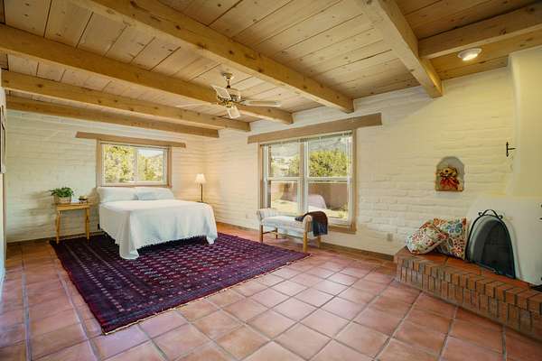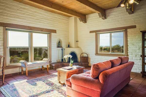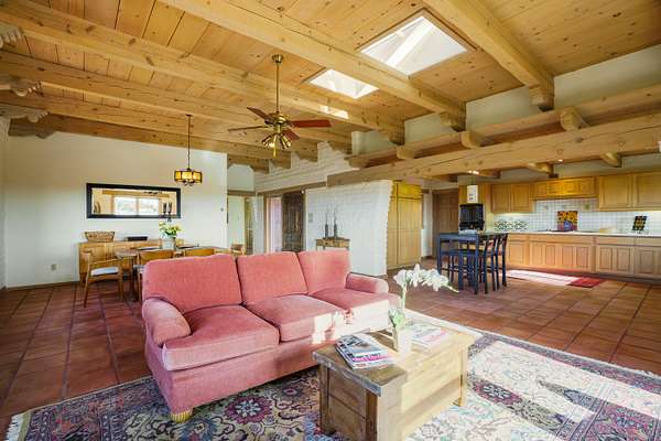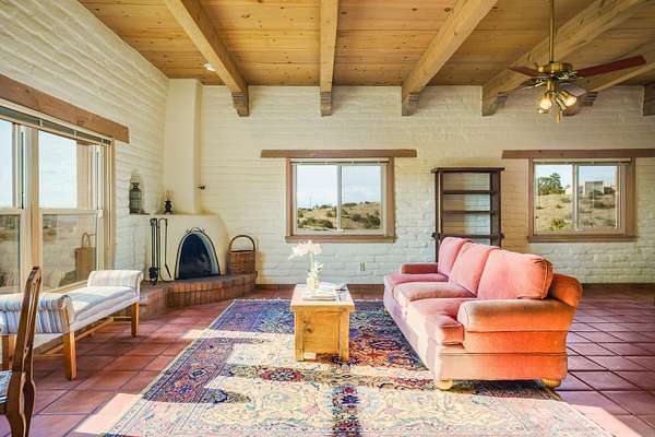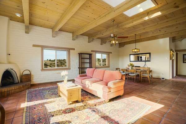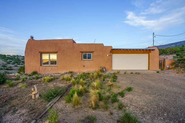 Experience timeless New Mexico charm in this one-owner, single-story adobe home. Set on just under 2 acres, this spacious property features oversized rooms, authentic Saltillo tile, soaring beamed ceilings, and rich wood accents throughout. Cozy up by the traditional kiva fireplace and soak in the breathtaking views from every angle. With its classic architecture and serene surroundings, this home is a true retreat--warm, inviting, and full of character. Don't miss your chance to own this desert sanctuary.