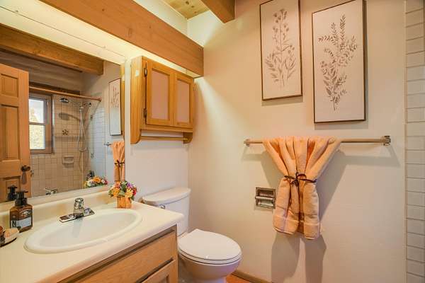 - Beamed Ceilings, Fireplace, Main Level Primary