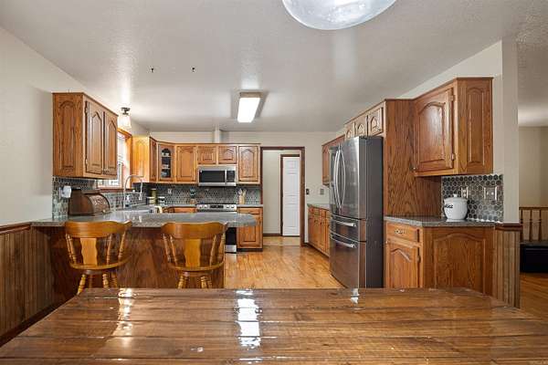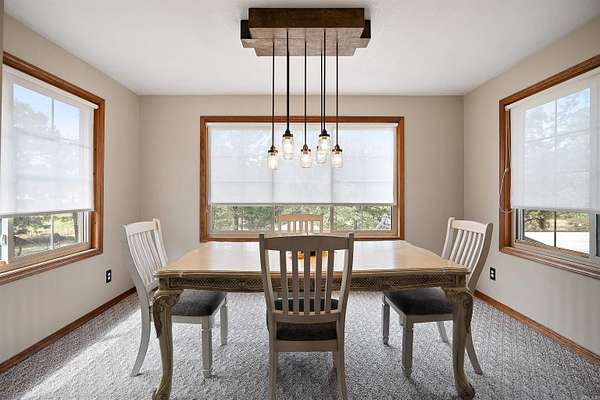 This spacious 3,702 square foot home combines modern updates with the peace of country living. Featuring 5 bedrooms and 3 bathrooms, the layout includes 3 bedrooms upstairs and 2 downstairs, sunroom, perfect for families, guests, or multi-generational living. The finished basement is a standout, complete with its own kitchen, living area, wood burning fireplace, and private entrance that is ideal for a mother-in-law suite, or guest retreat. Inside, enjoy fresh neutral paint throughout, generous living areas, a well-equipped main kitchen, newer stainless appliances, and abundant of storage. Major updates provide confidence and value, including a roof just 2 years old, brand-new guttering, and HVAC (outside) unit only 3 years old. An oversized double garage with stairs leading to overhead storage adds even more practicality and space. Outside, the property shines with 4.5 acres of mature trees and land for gardening, recreation, or animals, along with a private pond perfect for fishing or simply relaxing. Move-in ready with flexible living space, modern updates, and room to grow. Recent appraisal and inspection have been completed, schedule your showing today!
