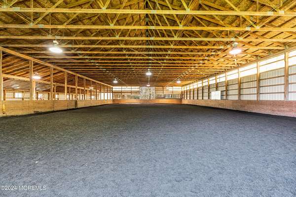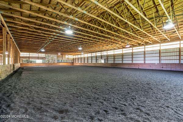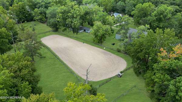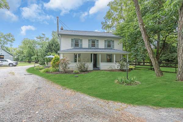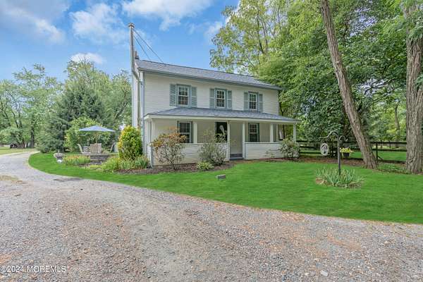 *1 YEAR HOME WARRANTY PLAN INCLUDED TO BUYER* 10+ ACRES!!! Welcome to the boutique equestrian center, Bountiful Blessings Farm, situated on 10.5 ACRES of verdant acreage, centrally located in Howell Township! This truly charming HORSE FARM PROPERTY has been an iconic venue on the Monmouth Country equestrian scene for decades with a tradition of excellence in dressage showing & training. This turn key FARM ASSESSED PROPERTY is an amazing opportunity for a professional trainer or amateur equestrian with the ability to host a variety of equine disciplines --- currently used as a dressage training center and host property for recognized & schooling dressage shows. Trot over to the true blue ribbon of the equestrian facility...the professionally installed 90 x 132 INDOOR ARENA with state of the art footing---featuring a 66 x 132 riding area & adjacent storage area for up to 12 additional box stalls. Do not miss the maintained OUTDOOR ARENA which exceeds regulation dressage dimensions & features a judge/official stand for hosting horse shows. The nostalgic HORSE BARN hosts 11 generous stalls & features feed room area & tack room. Lush fenced paddocks & grazing pastures across the property create an incredible haven for any horse. The rocking chair front porch is an inviting feature of the charming 3 bedroom, 1.5 bath FARMHOUSE with views of pasture & greenery from every direction. Step into a home that is refreshingly bright & airy, featuring a delightful lower level which flows to combines the living room/office w/ wood burning stove, sitting area, dining room, eat-in country kitchen & powder room. A space of pure enjoyment for relaxing & entertaining! The cozy second floor includes 3 bedrooms & an updated hallway full bath with soaking tub & shower stall. The tranquil acreage creates a secluded setting to relax outdoors which includes a patio & terrace overlooking the equestrian elements. An above ground pool is included to float away the summer days. Quiet country living in a tremendous location! *Bonus* NEW septic system installed. *Bonus* Freshly painted home. For those seeking to expand on their agricultural endeavors, this FARM ASSESSED property could easily blend in herbary or apiary activities as well as small livestock. For outdoor enthusiasts, revel in the surrounding beauty of the natural wildlife and environmental habitats of the nearby Manasquan Reservoir, a gem of the Monmouth County Park System. An abundance of open space yet still close to major conveniences such as commuter access to greater Manhattan/NYC as well as proximity to the Jersey Shore! Experience the pure charm of this enchanting horse farm!
